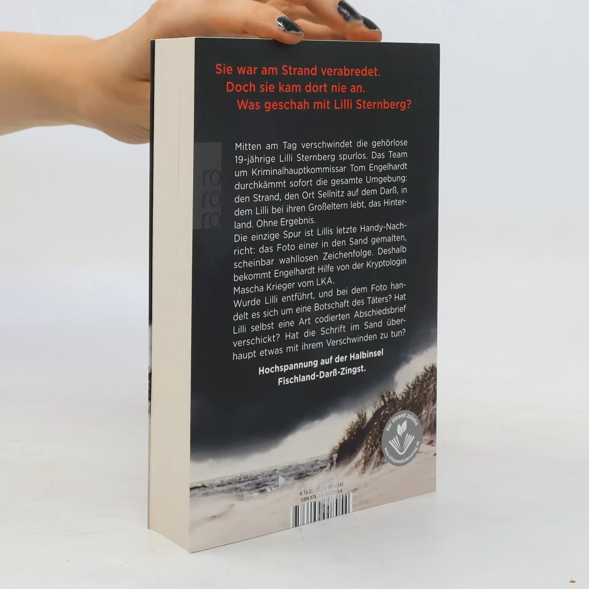 Der Auftakt der packenden Thriller-Trilogie um Kriminalhauptkommissar Tom Engelhardt und Kryptologin Mascha Krieger! Die gehörlose 19-jährige Lilli Sternberg verschwindet spurlos auf dem Weg zum Strand. Die Polizei unter der Leitung von Kriminalhauptkommissar Tom Engelhardt durchkämmt sofort die gesamte Umgebung: den Strand, den Ort Sellnitz, in dem Lilli bei ihren Großeltern lebt, das Hinterland. Ohne Ergebnis. Die einzige Spur ist Lillis letzte Handy-Nachricht an eine Freundin: das Foto einer in den Sand gemalten, scheinbar wahllosen Zeichenfolge. Engelhardt bekommt Hilfe von der Kryptologin Mascha Krieger vom LKA. Doch die Ermittler tappen im Dunkeln: Wurde Lilli entführt, und bei dem Foto handelt es sich um eine Botschaft des Täters? Hat Lilli selbst eine Art codierten Abschiedsbrief verschickt? Hat die Schrift im Sand überhaupt etwas mit ihrem Verschwinden zu tun?