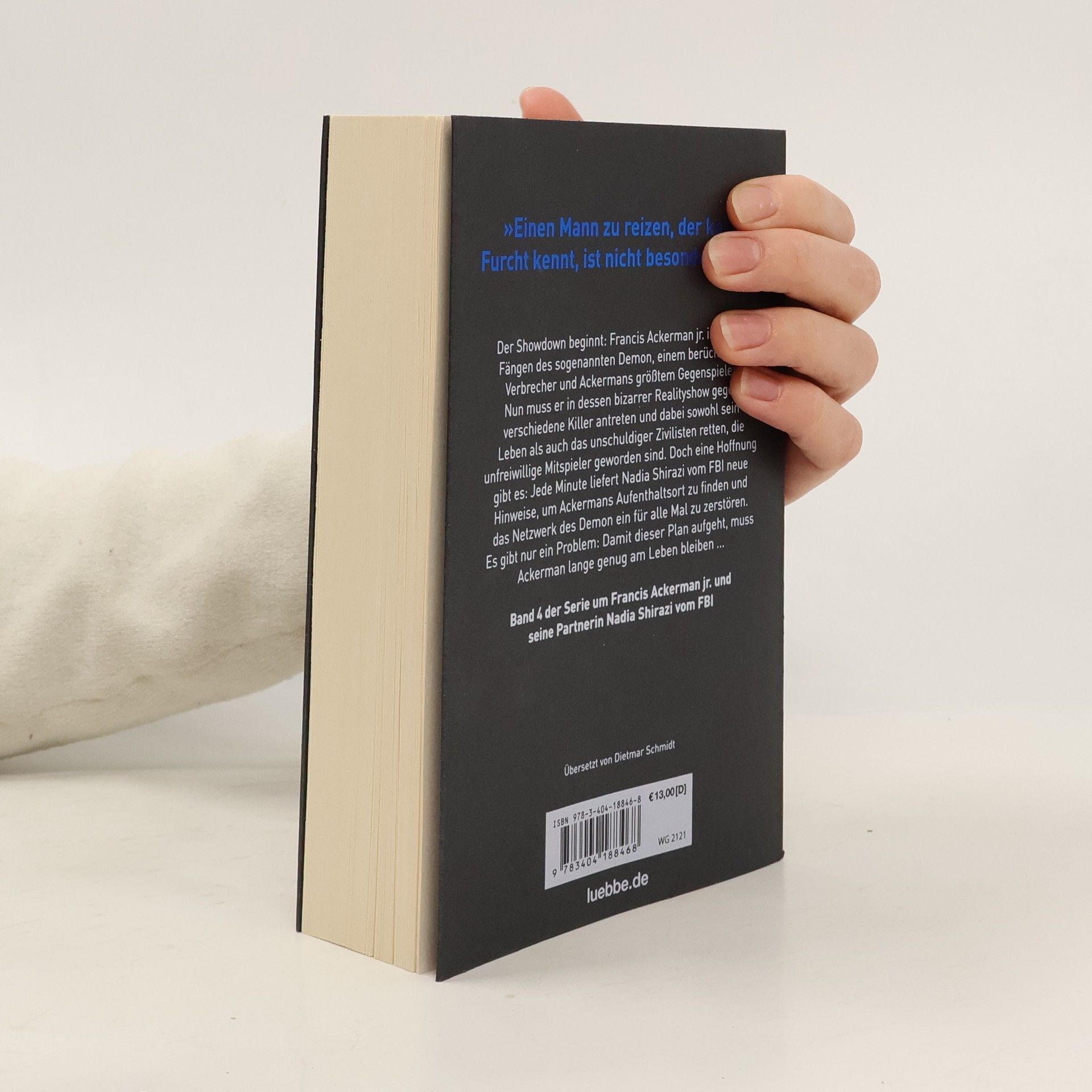 Band 4 der Serie um Francis Ackerman jr. und seine Partnerin Nadia Shirazi vom FBI »Einen Mann zu reizen, der keine Furcht kennt, ist nicht besonders klug« Der Showdown beginnt: Francis Ackerman jr. ist in den Fängen des sogenannten Demon, Ackermans größtem Gegenspieler. Nun muss er in dessen bizarrer Realityshow gegen verschiedene Killer antreten und dabei sowohl sein Leben als auch das unschuldiger Zivilisten retten, die unfreiwillige Mitspieler geworden sind. Doch eine Hoffnung gibt es: Jede Folge liefert Nadia Shirazi vom FBI neue Hinweise, um Ackermans Aufenthaltsort zu finden und das Netzwerk des Demon ein für alle Mal zu zerstören. Es gibt nur ein Problem: Damit dieser Plan aufgeht, muss Ackerman lange genug am Leben bleiben ...