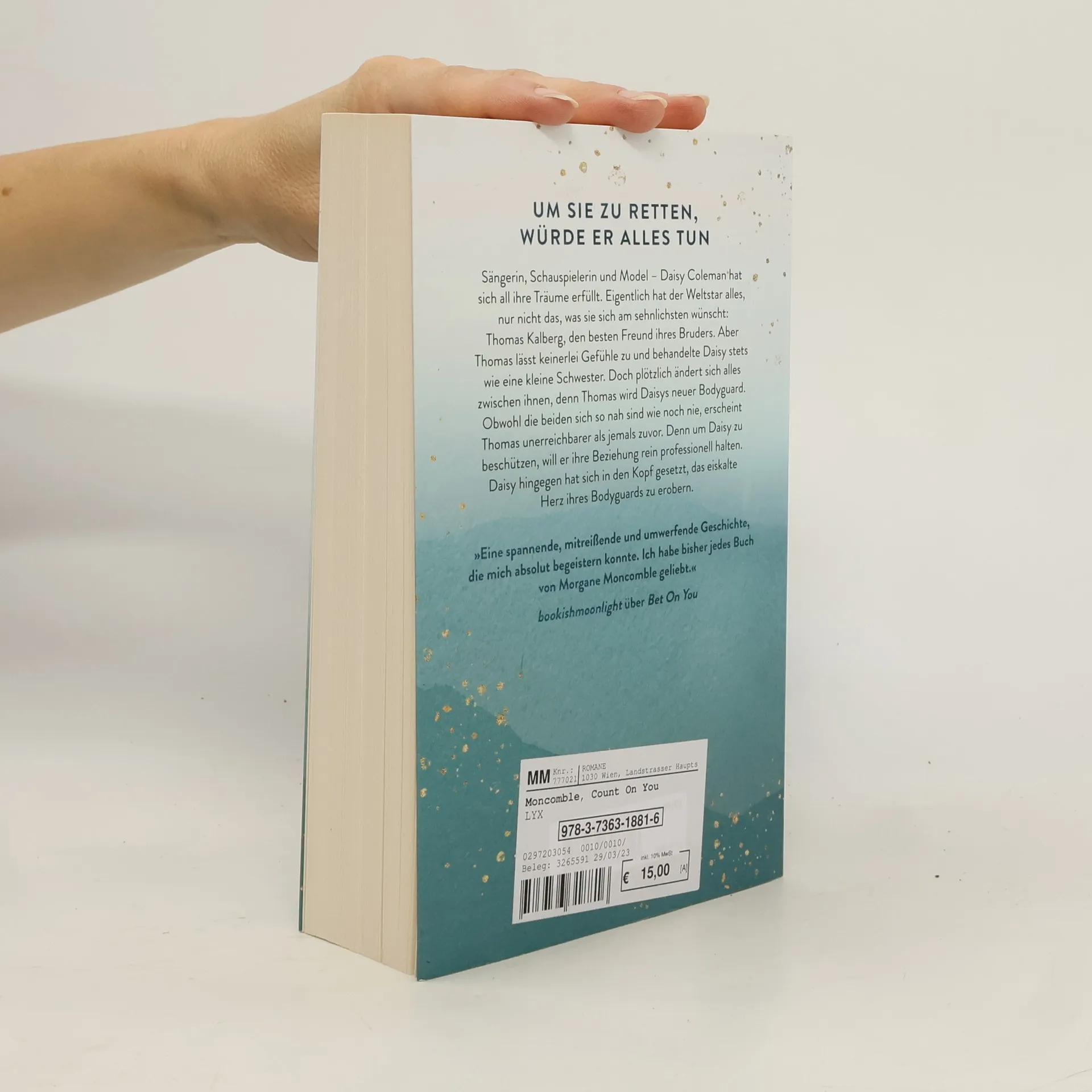 Um sie zu retten, würde er alles tun Sängerin, Schauspielerin und Model - Daisy Coleman hat sich all ihre Träume erfüllt. Eigentlich hat der Weltstar alles, nur nicht das, was sie sich am sehnlichsten wünscht: Thomas Kalberg, den besten Freund ihres Bruders. Aber Thomas lässt keinerlei Gefühle zu und behandelte Daisy stets wie eine kleine Schwester. Doch plötzlich ändert sich alles zwischen ihnen, denn Thomas wird Daisys neuer Bodyguard. Obwohl die beiden sich so nah sind wie noch nie, erscheint Thomas unerreichbarer als jemals zuvor. Denn um Daisy zu beschützen, will er ihre Beziehung rein professionell halten. Daisy hingegen hat sich in den Kopf gesetzt, das eiskalte Herz ihres Bodyguards zu erobern. „Eine spannende, mitreißende und umwerfende Geschichte, die mich absolut begeistern konnte. Ich habe bisher jedes Buch von Morgane Moncomble geliebt.“ BOOKISHMOONLIGHT über BET ON YOU Die Fortsetzung zu BET ON YOU von Morgane Moncomble