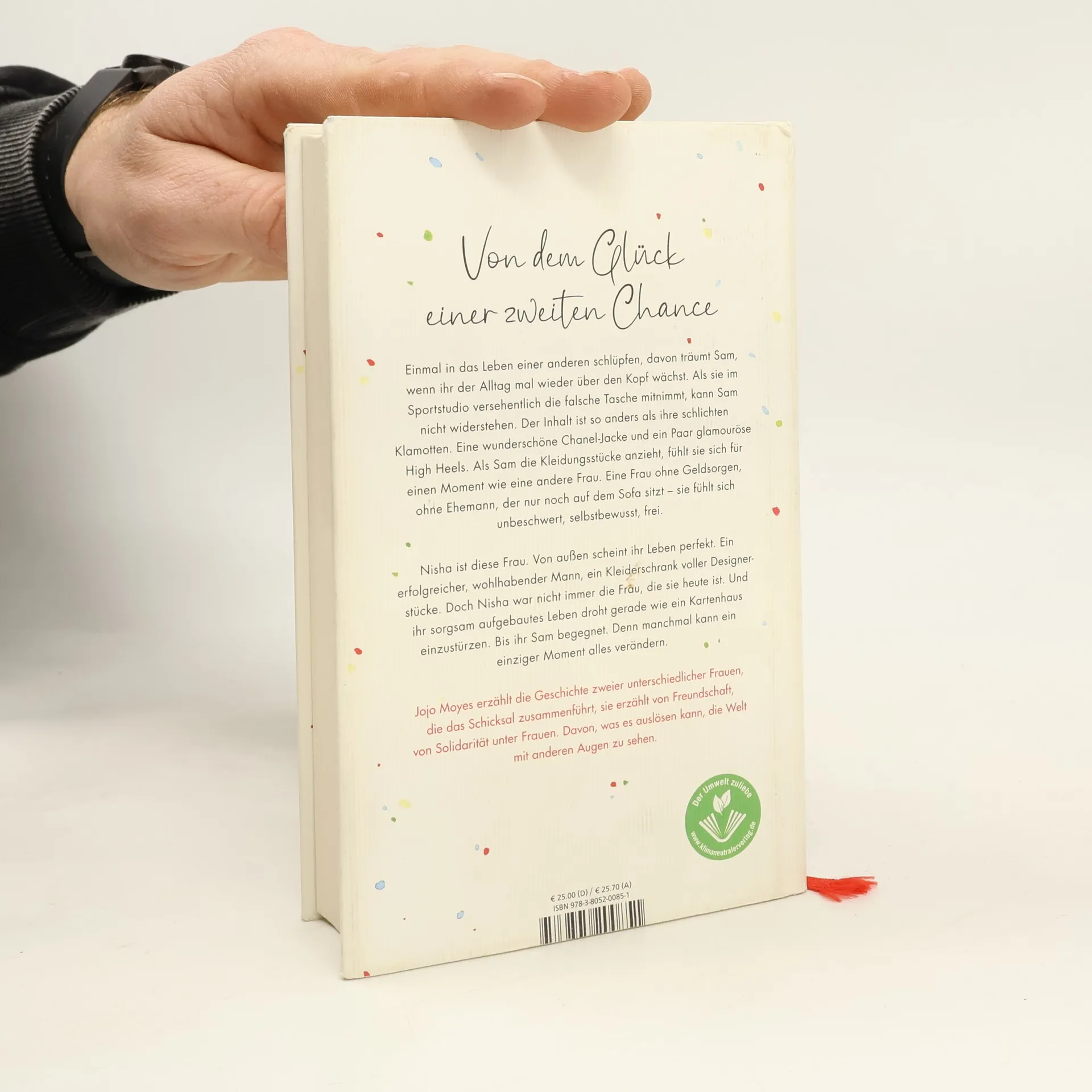 Mit «Ein ganzes halbes Jahr» hat Jojo Moyes Millionen Leser: innen-Herzen erobert. Ihre Romane sind unvergleichlich, lassen uns mitfühlen, bringen uns zum Weinen und zum Lachen. In ihrem neuen Roman erzählt Jojo Moyes die Geschichte zweier ungleicher Frauen, die das Schicksal zusammenführt. Einmal in das Leben einer anderen schlüpfen, davon träumt Sam, wenn ihr der Alltag mal wieder über den Kopf wächst. Als sie im Sportstudio versehentlich die falsche Tasche mitnimmt, kann sie nicht widerstehen. Der Inhalt ist so anders als ihre schlichten Klamotten. Eine wunderschöne Chanel-Jacke und ein Paar glamouröse High Heels. Als Sam die Kleidungsstücke anzieht, fühlt sie sich für einen Moment wie eine andere Frau. Eine Frau ohne Geldsorgen, ohne Ehemann, der nur noch auf dem Sofa sitzt - sie fühlt sich unbeschwert, selbstbewusst, frei. Nisha ist diese Frau. Von außen scheint ihr Leben perfekt. Ein erfolgreicher, wohlhabender Mann, ein Kleiderschrank voller Designerstücke. Doch Nisha war nicht immer die Frau, die sie heute ist. Und ihr sorgsam aufgebautes Leben droht gerade wie ein Kartenhaus einzustürzen. Bis ihr Sam begegnet. Denn manchmal kann ein einziger Moment alles verändern. Jojo Moyes erzählt die Geschichte von Sam und Nisha, sie erzählt von Freundschaft, von Solidarität unter Frauen. Davon, was es auslösen kann, die Welt mit anderen Augen zu sehen. Und von dem Glück einer zweiten Chance.