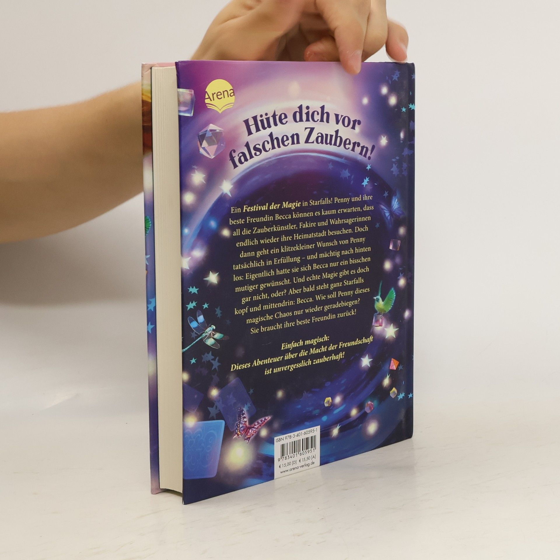 Echte Freundschaft oder falscher Zauber? Ein Festival der Magie in Starfalls! Penny und ihre beste Freundin Becca können es kaum erwarten, dass all die Zauberkünstler, Fakire und Wahrsager wieder ihre Heimatstadt besuchen. Doch dann geht ein klitzekleiner Wunsch von Penny tatsächlich in Erfüllung - und mächtig nach hinten los! Die zaghafte Becca ist mit einem Mal wie ausgewechselt und auf Streit gebürstet. Dabei hatte Penny sie sich doch nur ein bisschen mutiger gewünscht. Und echte Magie gibt es doch gar nicht! Oder doch? Bald steht ganz Starfalls auf dem Kopf und nur eine kann Penny helfen, um das Chaos wieder geradezubiegen: Becca. Zu blöd nur, dass die genau das Gegenteil im Sinn hat … Rasant und spannend bis zu letzten Seite - dieses magische-Abenteuer über die Macht der Freundschaft ist unvergesslich zauberhaft ! Eine packende Geschichte über eine starke Heldin , die für Freundschaft, Fantasie und Freiheit kämpft. Für alle ab 10 Jahren, mit besonderer Lese-Empfehlung für Leser*innen von „Land of Stories“ und „Mitternachtsstunde“.