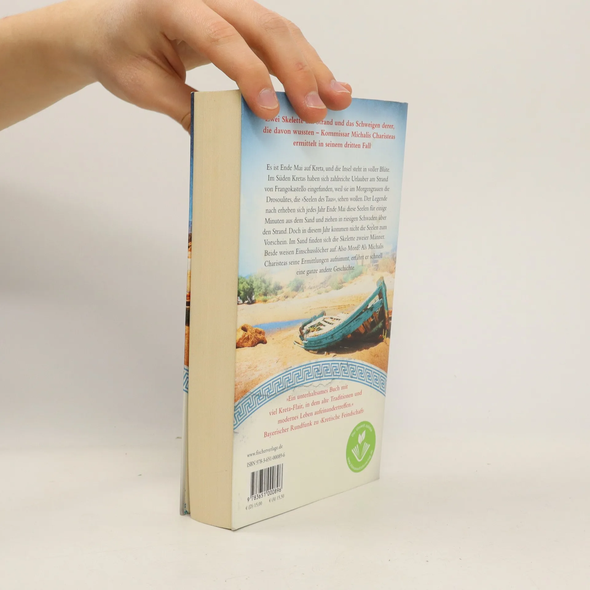 Zwei Skelette am Strand und das Schweigen derer, die davon wussten – Kommissar Michalis Charisteas ermittelt in seinem dritten Fall Es ist Ende Mai auf Kreta, und die Insel steht in voller Blüte. Im Süden Kretas haben sich zahlreiche Urlauber am Strand von Frangokastello eingefunden, weil sie im Morgengrauen die Drosoulites, die „Seelen des Taus“, sehen wollen. Der Legende nach erheben sich jedes Jahr Ende Mai diese Seelen für einige Minuten aus dem Sand und ziehen in riesigen Schwaden über den Strand. Doch in diesem Jahr kommen nicht die Seelen zum Vorschein: Im Sand finden sich die Skelette zweier Männer. Beide weisen Einschusslöcher auf. Also Mord? Als Michalis Charisteas seine Ermittlungen aufnimmt, erfährt er jedoch eine völlig andere Geschichte. »Ein unterhaltsames Buch mit viel Kreta-Flair, in dem alte Traditionen und modernes Leben aufeinandertreffen.« Bayerischer Rundfunk zu ‚Kretische Feindschaft‘