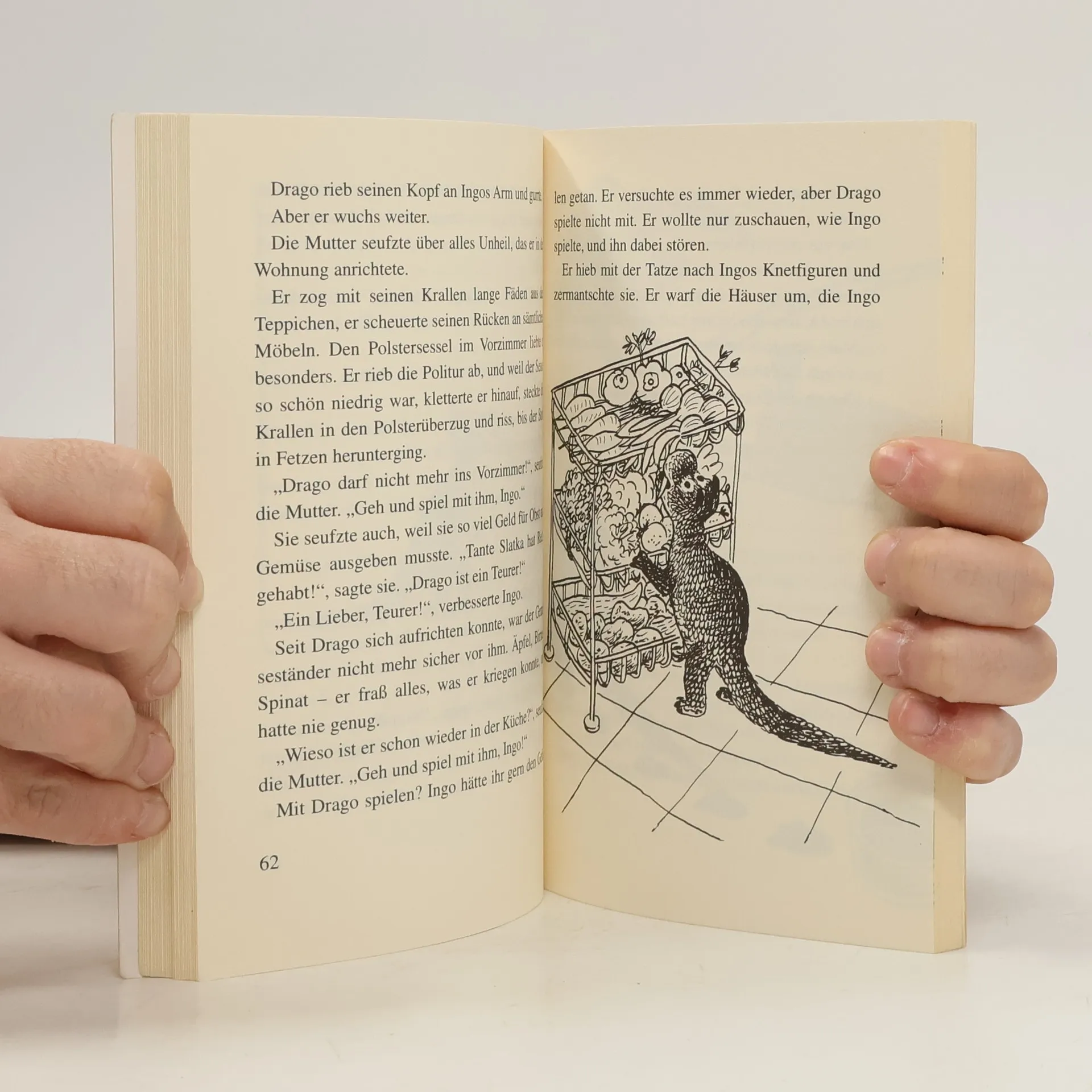 Ingo sucht im Park seinen Ball und findet stattdessen ein ungewöhnliches Ei. Er nimmt es mit nach Hause und bald schlüpft ein seltsames Tier: ein kleiner Drache. Ingo ist begeistert und nennt ihn Drago, auch seine Eltern und seine Schwester sind zunächst angetan. Doch Drago wächst schnell und sorgt immer mehr für Probleme. Er frisst zu viel, verwüstet die Wohnung, stört die Nachbarn und erschreckt die Leute im Park. Die Eltern versuchen Ingo klarzumachen, dass Drago nicht mehr bei ihnen leben kann: Es wäre besser, ihn in einen Zoo zu bringen. Aber Ingo gibt nicht auf und bringt seinen Schützling in einen Schrebergarten, der dem Großvater von Freunden gehört. Als der Drache Flügel bekommt, fliegt er davon. Ingo ist über diesen Abschied sehr traurig und erkennt zugleich, dass dies das Beste für alle ist.