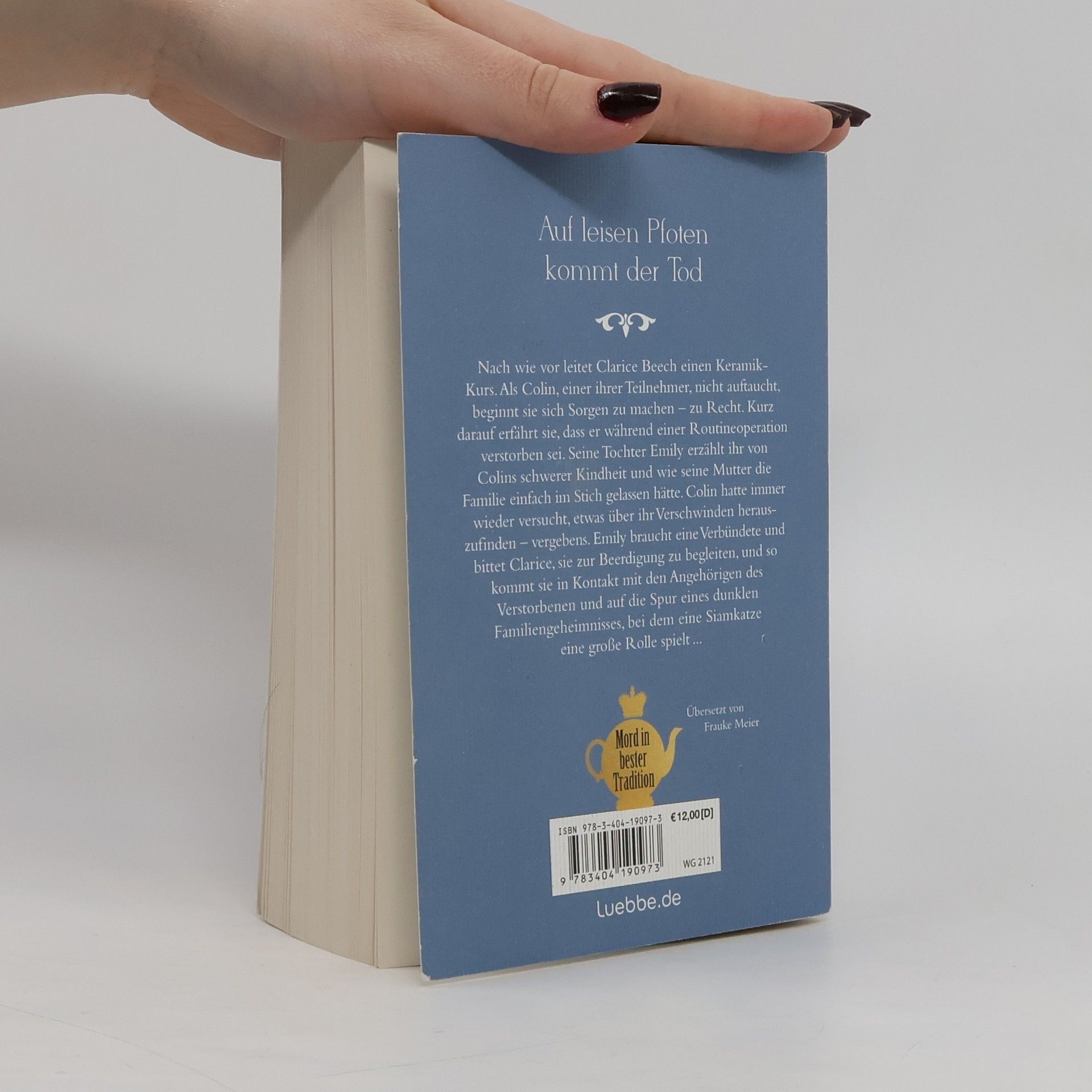 Nach wie vor leitet Clarice Beech einen Keramik-Kurs. Als Colin, einer ihrer Teilnehmer, nicht auftaucht, beginnt sie sich Sorgen zu machen - zu Recht. Kurz darauf erfährt sie, dass er während einer Routineoperation verstorben sei. Seine Tochter Emily erzählt ihr von Colins schwerer Kindheit und wie seine Mutter die Familie einfach im Stich gelassen hätte. Colin hatte immer wieder versucht, etwas über ihr Verschwinden herauszufinden - vergebens. Bis vor kurzem! Clarice sagt zu, Emily zur Beerdigung zu begleiten, und kommt so in Kontakt mit den Angehörigen des Verstorbenen und auf die Spur eines dunklen Familiengeheimnisses, bei dem eine Siamkatze eine große Rolle spielt ...