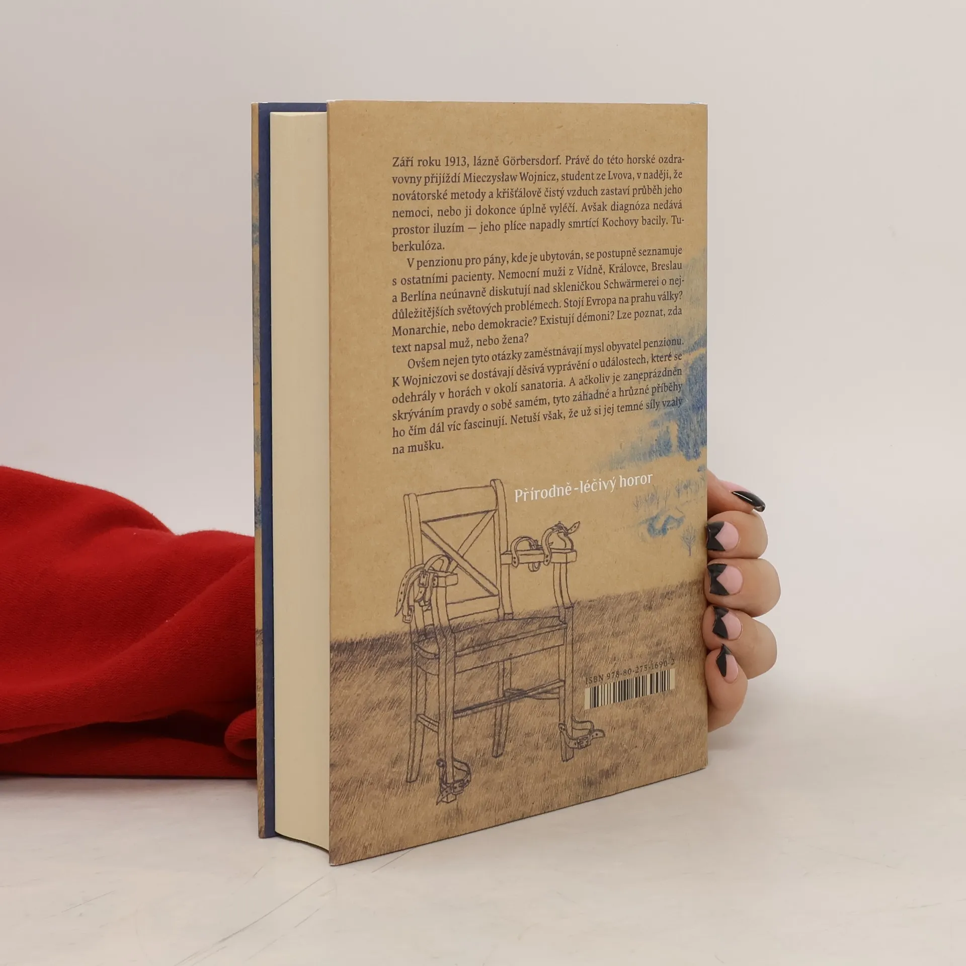 Přírodní léčivý horor. Září roku 1913, léčebné lázně Görbersdorf. Mieczysław Wojnicz, student ze Lvova, přijíždí do lázní v naději, že nejmodernější metody a křišťálově čistý vzduch zastaví průběh jeho nemoci, nebo ji možná úplně vyléčí. Avšak diagnóza nedává prostor iluzím. Mieczysław totiž trpí tuberkulózou. Ubytuje se v penzionu, kde poznává některé z pacientů. Nad likérem Schwärmerei nemocní muži z Vídně, Královce a Vratislavi neúnavně diskutují o nejpalčivějších světových problémech. Stojí Evropa na prahu války? Je lepší monarchie, nebo demokracie? Existuje zlo? Je možné určit, zda nějaký text psal muž, nebo žena? Mieczysław zároveň naslouchá šokujícím příběhům o tragických událostech, které se odehrály na vrchovině v okolí sanatoria. Ačkoli je zaneprázdněn hledáním pravdy v sobě samém, záhadné hrůzné události ho čím dál tím víc fascinují. Netuší však, že už si ho zlověstné síly vybraly za svůj další terč.