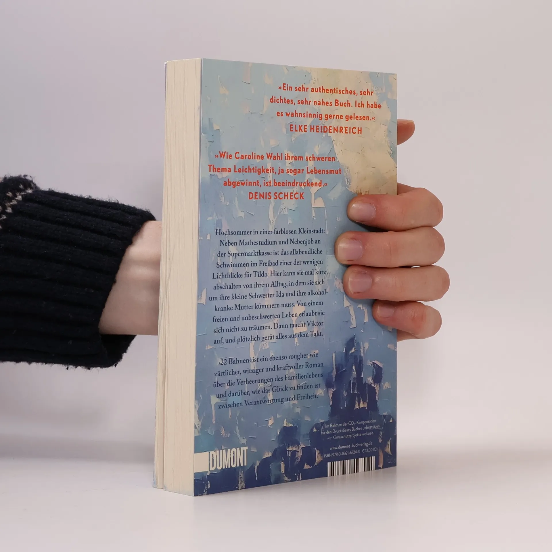 Tildas Tage sind strikt durchgetaktet: studieren, an der Supermarktkasse sitzen, sich um ihre kleine Schwester Ida kümmern und an schlechten Tagen auch um die Mutter. Zu dritt wohnen sie im traurigsten Haus der Fröhlichstraße in einer Kleinstadt, die Tilda hasst. Ihre Freunde sind längst weg, leben in Amsterdam oder Berlin, nur Tilda ist geblieben. Denn irgendjemand muss für Ida da sein, Geld verdienen, die Verantwortung tragen. Nennenswerte Väter gibt es keine, die Mutter ist alkoholabhängig. Eines Tages aber geraten die Dinge in Bewegung: Tilda bekommt eine Promotion in Berlin in Aussicht gestellt, und es blitzt eine Zukunft auf, die Freiheit verspricht. Und Viktor taucht auf, der große Bruder von Ivan, mit dem Tilda früher befreundet war. Viktor, der genau wie sie immer 22 Bahnen schwimmt. Doch als Tilda schon beinahe glaubt, es könnte alles gut werden, gerät die Situation zu Hause vollends außer Kontrolle. ›22 Bahnen‹ ist eine raue und gleichzeitig zärtliche Geschichte über die Verheerungen des Familienlebens und darüber, wie das Glück zu finden ist zwischen Verantwortung und Freiheit. »Caroline Wahl findet das Besondere im Alltäglichen und das Tröstliche im Schmerzvollen. Ein berührendes und feinsinniges Buch, mit dem man gern befreundet wäre.« BENEDICT WELLS »Ich bin durch ›22 Bahnen‹ gerauscht und hellauf begeistert. Herzerwärmend, fein, gnadenlos und richtig schön zugleich.« ALINA BRONSKY