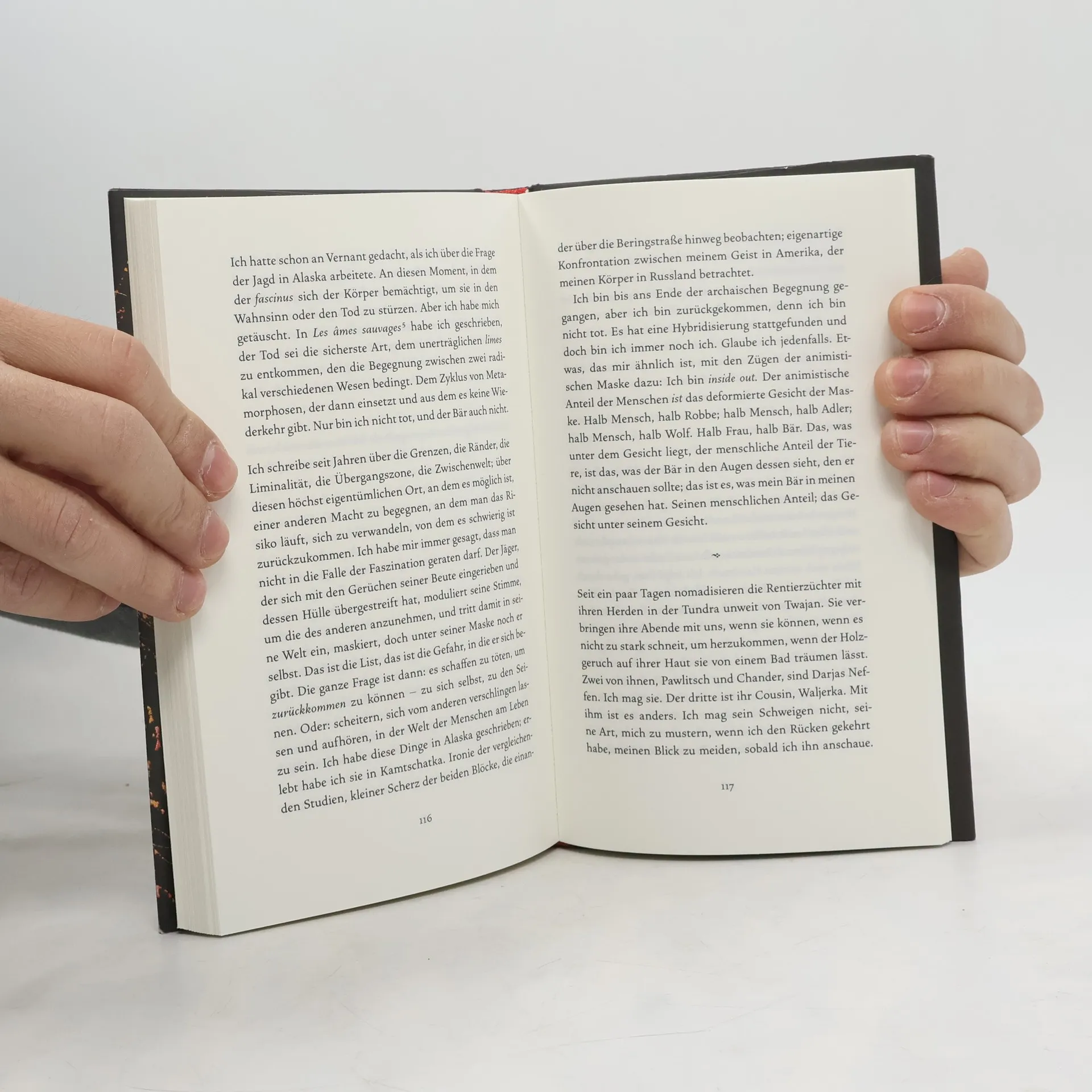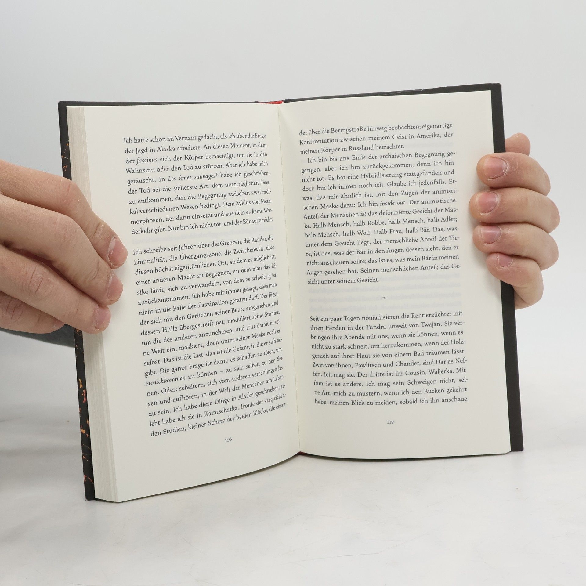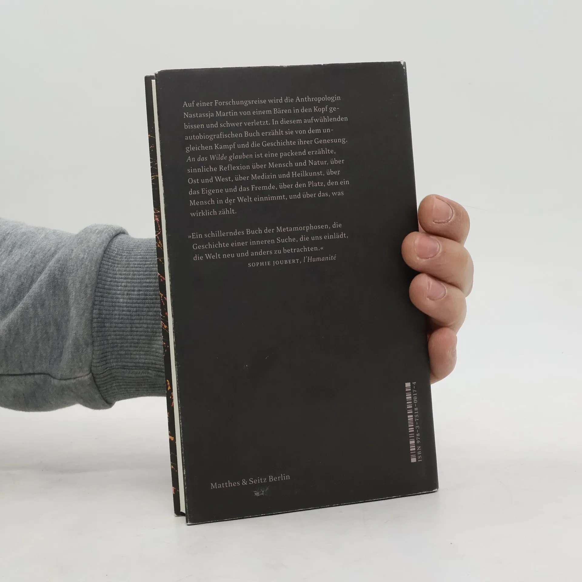 Auf einer Forschungsreise wird Nastassja Martin von einem Bären gebissen und schwer verletzt. In aufwühlenden Worten erzählt sie von der Geschichte dieses Kampfes und von ihrer Genesung. Die Anthropologin Nastassja Martin teilt in dieser packenden autobiografischen Erzählung die Geschichte einer tiefen Verletzung und ihrer Heilung. Auf einer ihrer oft monatelangen Forschungsreisen auf die von Vulkanstümpfen durchzogene russische Halbinsel Kamtschatka, wo sie die Bräuche und Kosmologien der Ewenen studiert, taucht sie tief in deren Kultur ein und beginnt intensiv zu träumen. Nach einer Bergtour begegnet sie einem Bären: Es kommt zum Kampf, er beißt sie ins Gesicht und die 29-Jährige gerät in einen Zustand versehrter Identität. Was sie zuvor als Wissenschaftlerin beschrieben hat – die animistische Durchmischung von allem – erfährt sie nun am eigenen Leib. Die Grenzen zwischen dem Bären und ihrer selbst, oder dem, was früher sie selbst war, verschwimmen. Träume und Erinnerungen lassen Nastassja Martin umfassende Heilung in sich selbst und der Wildnis finden, in die sie nach einer qualvollen Genesungsgeschichte in russischen und französischen Krankenhäusern zurückkehrt.
