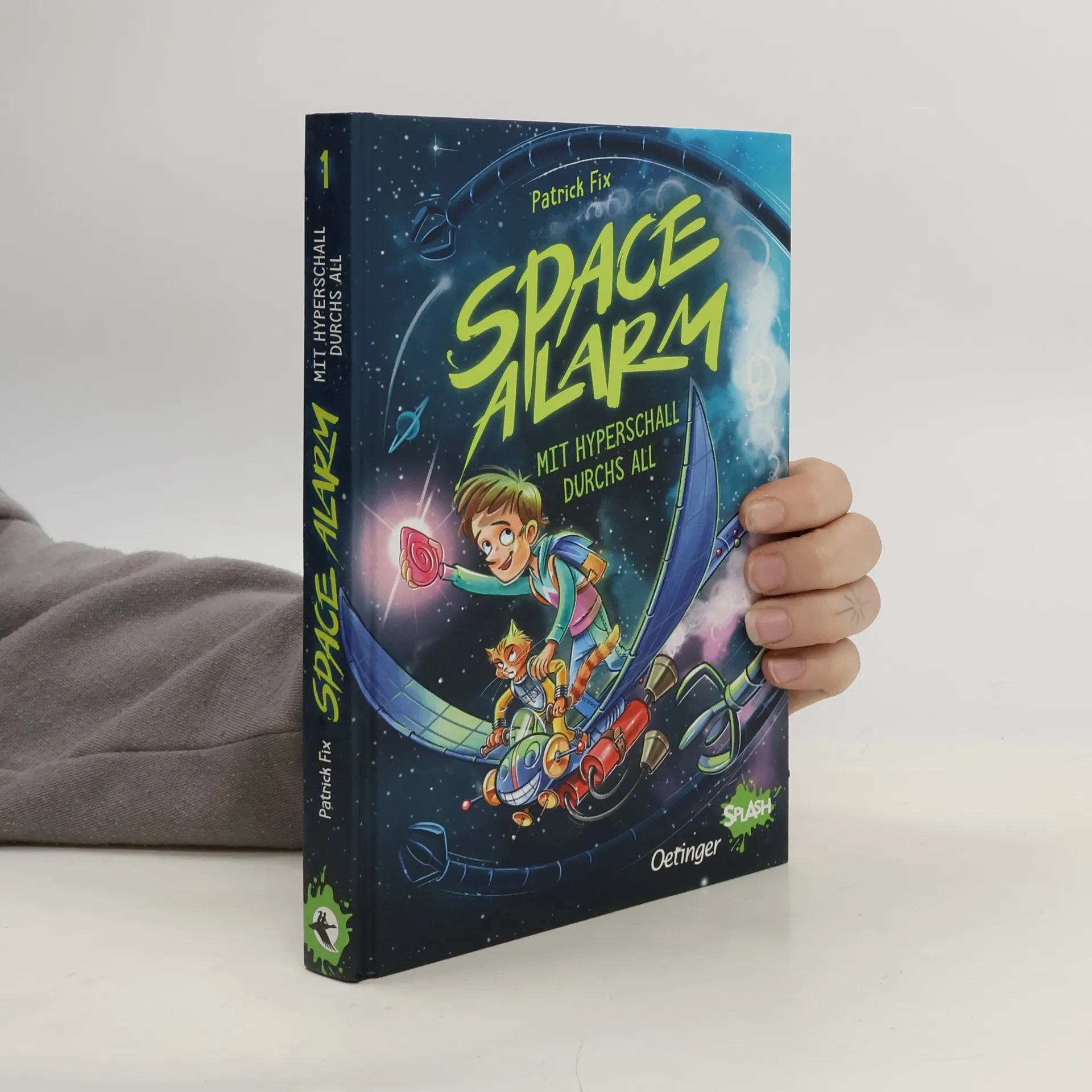 Ein intergalaktisches Abenteuer beginnt, als Sammy Supernova eines Morgens ein seltsames Hologramm in seiner Müslipackung entdeckt – eine Botschaft aus dem All! Seine Eltern, interstellare Geheimagenten, werden für eine wichtige Mission gerufen. Der Weltraumpirat Grimmlin Graubrot ist aus dem Gefängnis ausgebrochen und hat die Erde im Visier. Sein Ziel: der wertvolle Edelstein „Das Herz der Sonne“, der sich zufällig im Küchenschrank von Sammys Familie befindet. Sammy beginnt ein neues Leben und zieht mit seinen Eltern nach Proxima Centauri, dem Hauptquartier der Weltraumagenten. Wird es ihnen gelingen, den Edelstein zu schützen? Auf Sammy und seine neuen Freunde wartet ein aufregendes intergalaktisches Abenteuer, das ihn dazu bringt, über sich hinauszuwachsen. Das Buch bietet galaktisches Lesevergnügen mit humorvollen und spannenden Elementen, ideal für schüchterne Kinder, die Mut finden möchten. Die neue Oetinger SPLASH-Reihe richtet sich an Kinder ab 8 Jahren und bietet kurze Kapitel sowie überschaubare Textmengen, perfekt für leseungeübte Kinder. Interaktive Rätsel und Illustrationen machen das Lesen noch spannender. „Space Alarm 1 – Mit Hyperschall ins All“ ist ein fesselndes Weltraum-Abenteuer, das als ideales Geschenk für weniglesende Kinder oder solche, die selbst lesen möchten, dient.