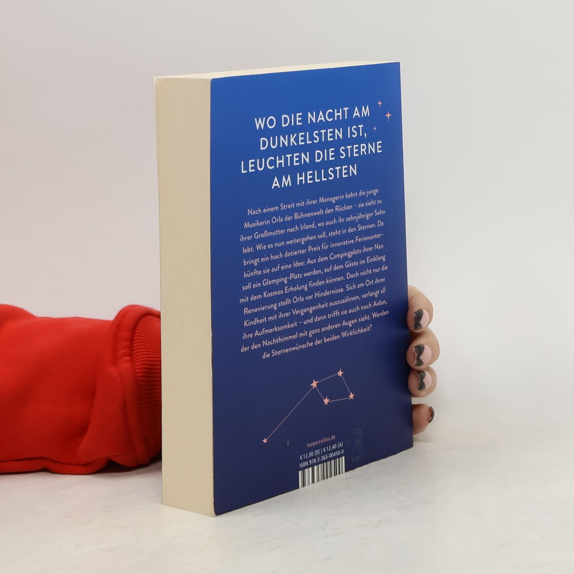 Wo die Nacht am dunkelsten ist, leuchten die Sterne am hellsten Nach einer heftigen Auseinandersetzung mit ihrer Managerin ist die junge Musikerin Orla gezwungen, der Bühnenwelt den Rücken zu kehren. Sie macht sich auf den Weg zu ihrer Großmutter nach Irland, bei der auch ihr zehnjähriger Sohn Shay lebt. Wie es von dort aus weitergehen soll, steht in den Sternen, denn für eine alleinerziehende Sängerin mit gescheiterter Musikkarriere gibt es nicht viel zu tun im ländlichen Kerry. Da bringt ein mit 100.000 € dotierter Preis für die innovativste Ferienunterkunft sie auf eine Idee: Aus dem in die Jahre gekommenen Campingplatz ihrer Nan soll ein Glamping-Platz werden, auf dem Gäste im Einklang mit dem Kosmos Erholung finden und Kraft schöpfen können. Doch nicht nur die Renovierung stellt Orla vor immer neue Hindernisse. Sich am Ort ihrer Kindheit mit ihrer Vergangenheit auszusöhnen, verlangt all ihre Aufmerksamkeit – und dann tritt auch noch Aidan in ihr Leben, der den Nachthimmel mit ganz anderen Augen sieht. Werden die Sternenwünsche der beiden endlich Wirklichkeit werden?