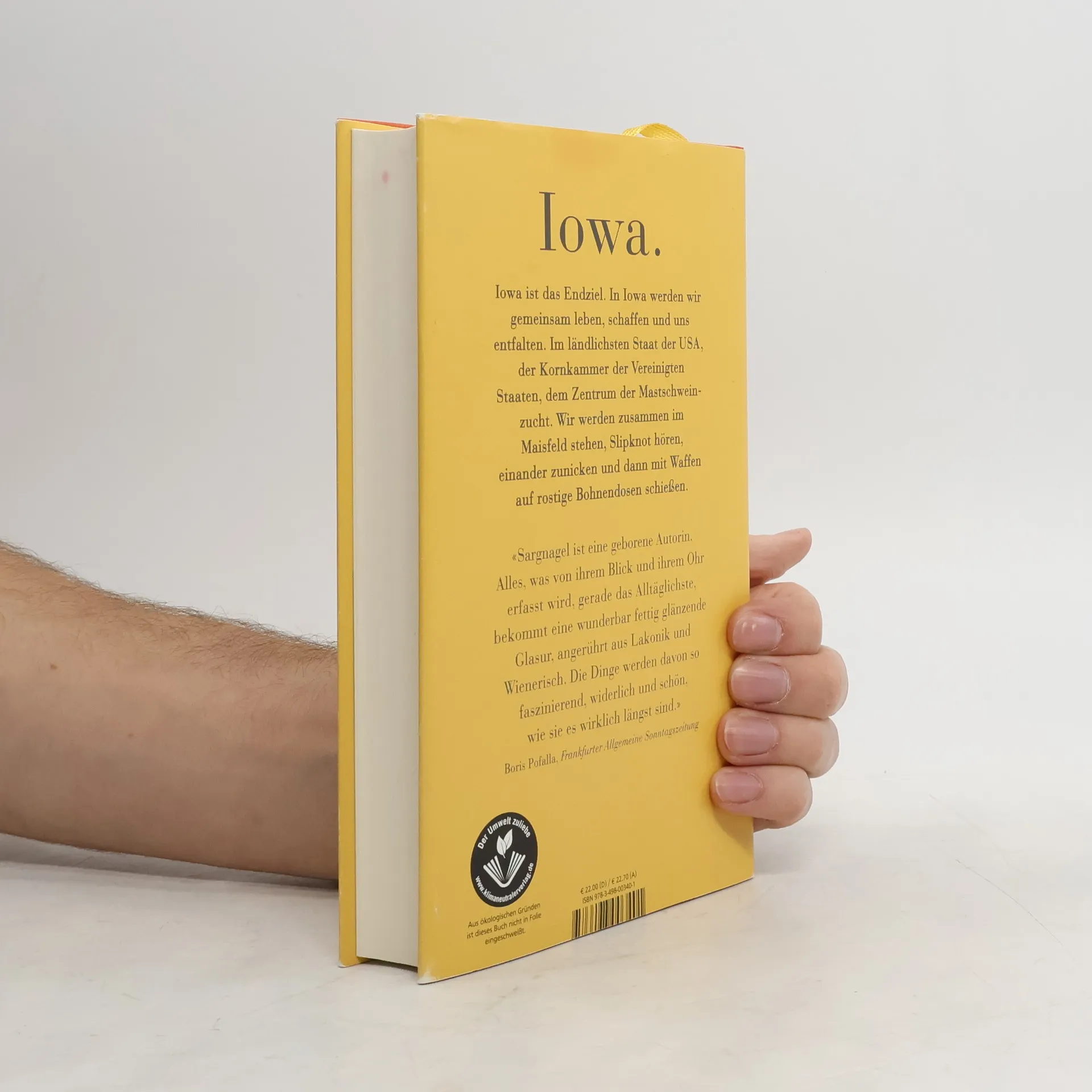 Das neue Buch der österreichischen Bestsellerautorin („Dicht“). Stefanie Sargnagels Blick auf die USA ist so unverwechselbar wie ihr Schreiben: Sarkastisch, schonungslos ehrlich und doch voll Sympathie bringt sie uns das ländliche Amerika nahe und berichtet nebenbei herzerwärmend über die Lebensnotwendigkeit von Frauenfreundschaften. 2022 tauscht Stefanie Sargnagel widerstrebend das bequeme Wiener Sofa gegen ein Flugticket in die USA ein. In Iowa soll sie an einem College mitten im Nirgendwo Creative Writing unterrichten. In der Kleinstadt Grinnell mit ihren 8000 Einwohnern gibt es außer endlosen Maisfeldern: nichts. Mit von der Partie ist Musiklegende Christiane Rösinger, und gemeinsam machen die beiden sich auf, das Nichts zu erkunden. Sie finden übergewichtige freundliche Einheimische, traditionelle Geschlechterrollen, Riesensupermärkte, unglaubliche Würstchen und ein Glas voller eingelegter Truthahnmägen. Mit korrigierenden Fußnoten von Christiane Rösinger.