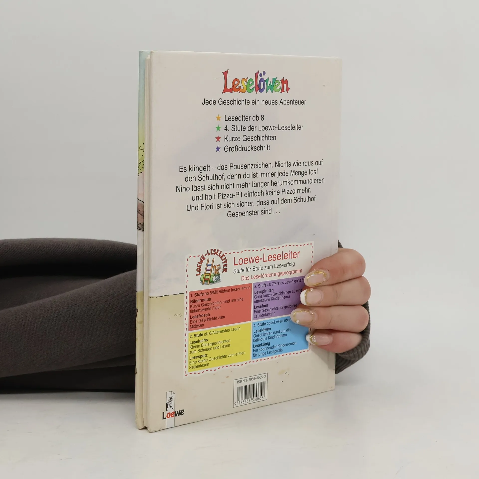 Lesealter ab 8 4. Stufe der Loewe-Leseleiter Kurze Geschichten Großdruckschrift Es klingelt - das Pausenzeichen. Nichts wie raus auf den Schulhof, denn da ist immer jede Menge los! Nino lässt sich nicht mehr länger herumkommandieren und holt Pizza-Pit einfach keine Pizza mehr. Und Flori ist sich sicher, dass auf dem Schulhof Gespenster sind.