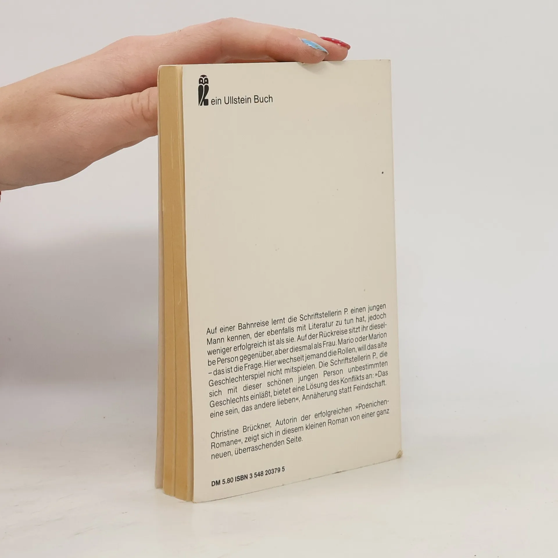 Auf einer Bahnreise lernt die Schriftstellerin P. einen jungen Mann kennen, der ebenfalls mit Literatur zu tun hat, jedoch weniger erfolgreich ist als sie. Auf der Rückreise sitzt ihr dieselbe Person gegenüber, aber diesmal als Frau. Jemand, der die Rollen wechselt! Dass ein solcher Wechsel möglich ist, fasziniert die Autorin. Der Zufall spielt ihr beides auf einmal zu, das Thema und die Hauptperson.