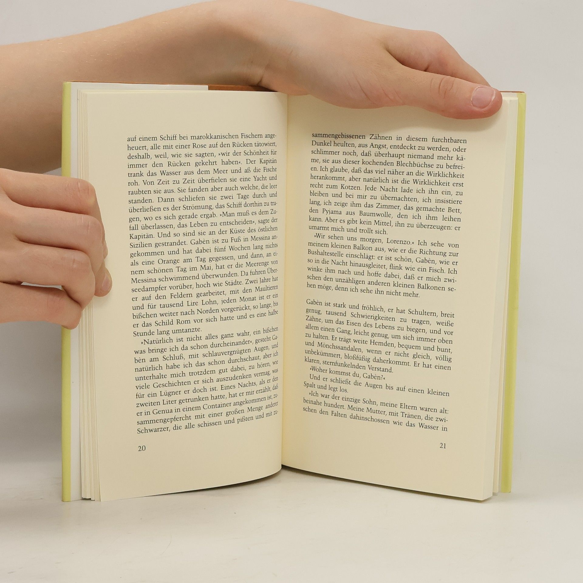 Der Römer Lorenzo Marchese, Handelsvertreter a. D., ein wenig alt, ein wenig einsam nach dem Tod von Caterina, der zwei Meter großen Korbballspielerin mit dem verlorenen Blick einer Riesin, begegnet an der Stazione Termini dem Schwarzafrikaner Gabèn. Der weiß, als der sechzigste von neunundfünfzig älteren Brüdern, phantastische Geschichten über die eigene Herkunft zu erzählen und glaubt, daß alles, was im Kopf geschieht, auch in dieser Welt möglich sein sollte. Also stürzen sich die beiden ungleichen Gefährten gemeinsam in eine Reihe von Abenteuern, in denen sie das nächtliche Rom und seine Unterwelt mit den armen, verlorenen Seelen durchstreifen. Und als Gabèn das Geld ausgeht, druckt er zusammen mit Lorenzo neues. Zahlen kann er mit dieser phantastischen Währung so lange, wie seine Zuhörer und Bewunderer ihm Glauben schenken.