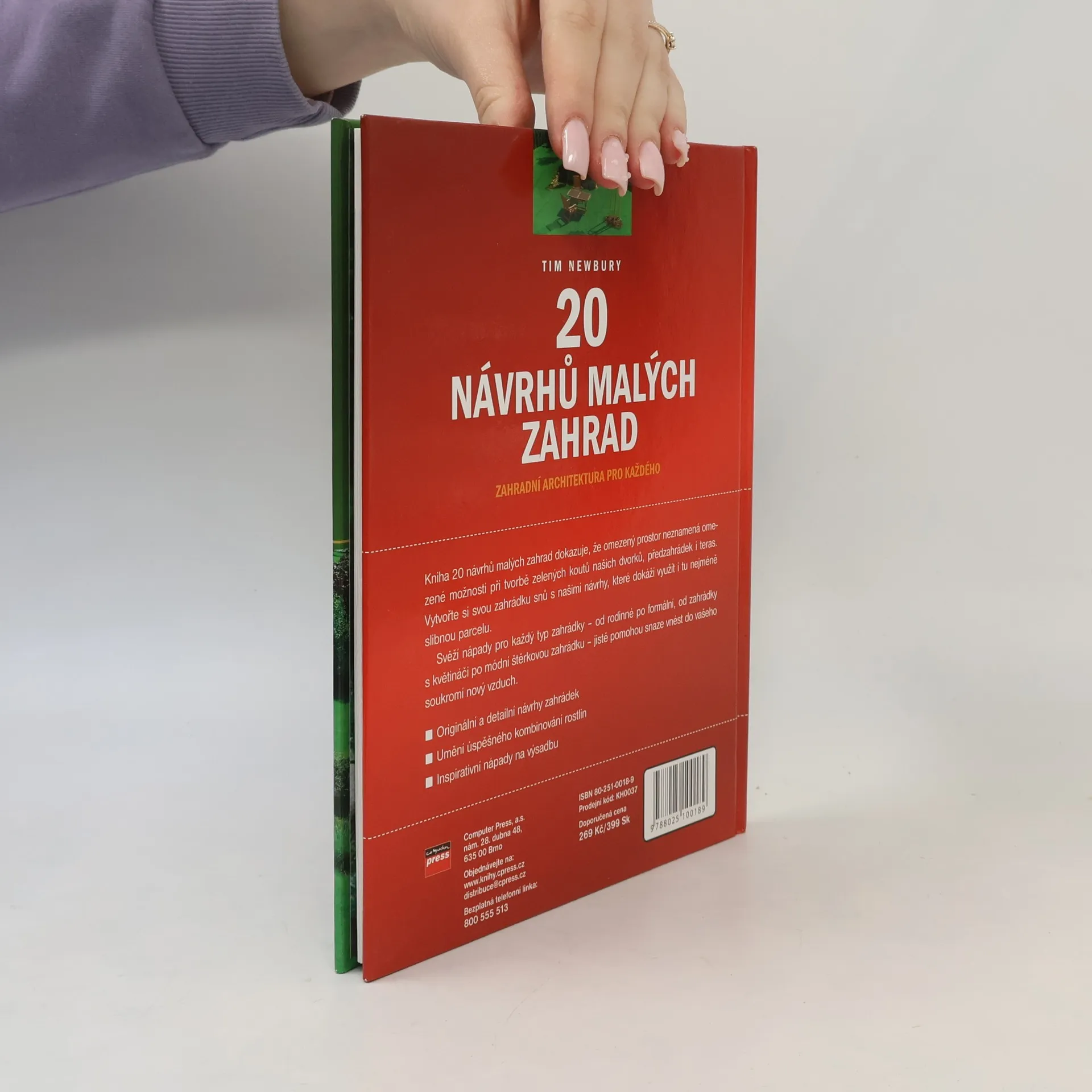 Kniha 20 návrhů malých zahrad dokazuje, že omezený prostor neznamená omezené možnosti při tvorbě zelených koutů našich dvorků, předzahrádek i teras. Vytvořte si svou zahrádku snů s našimi návrhy, které dokáží využít i tu nejméně slibnou parcelu. Svěží nápady pro každý tip zahrádky - od rodinné po formální, od zahrádky s květináči po módní štěrkovou zahrádku - jistě pomohou snaze vnést do vašeho soukromí nový vzduch.... celý text