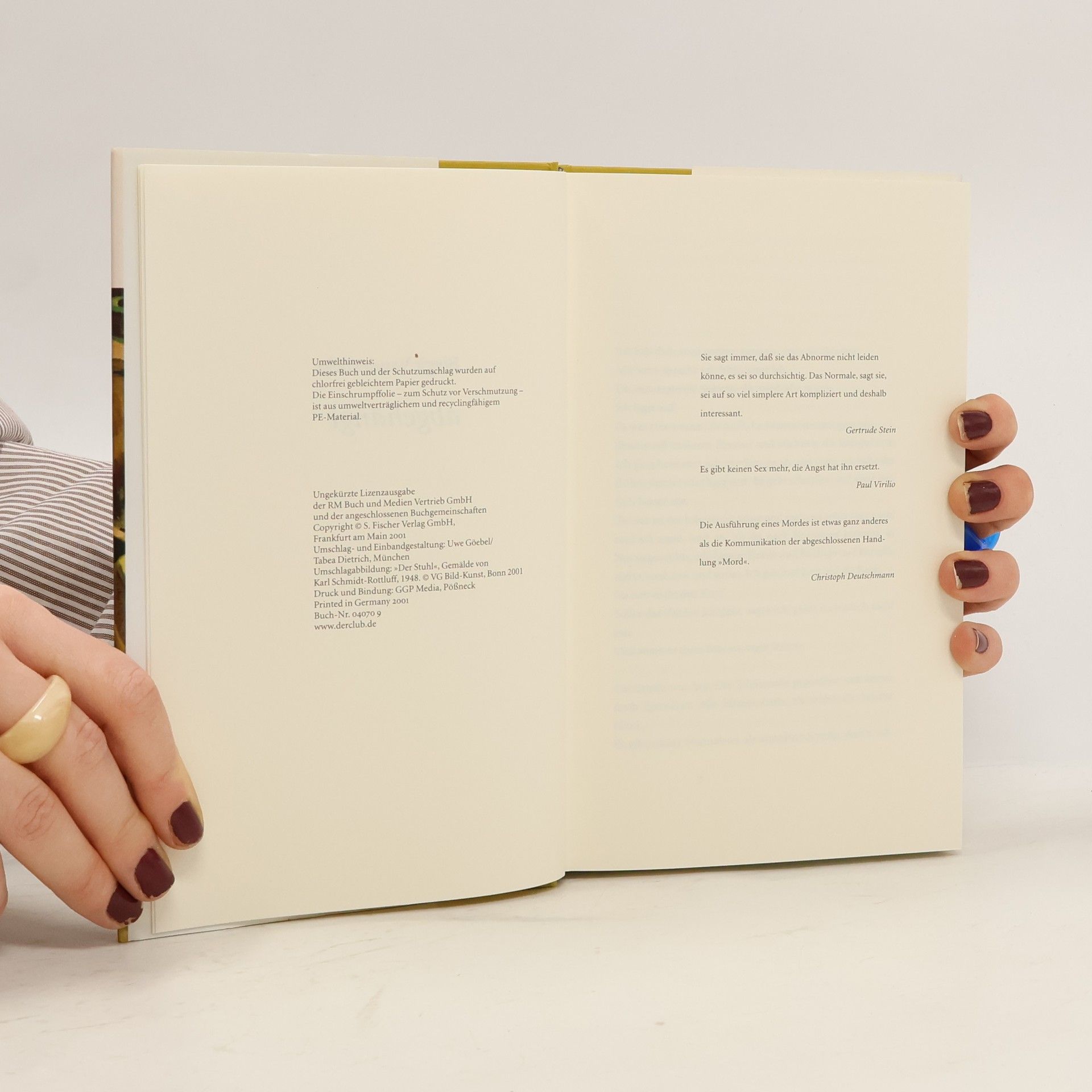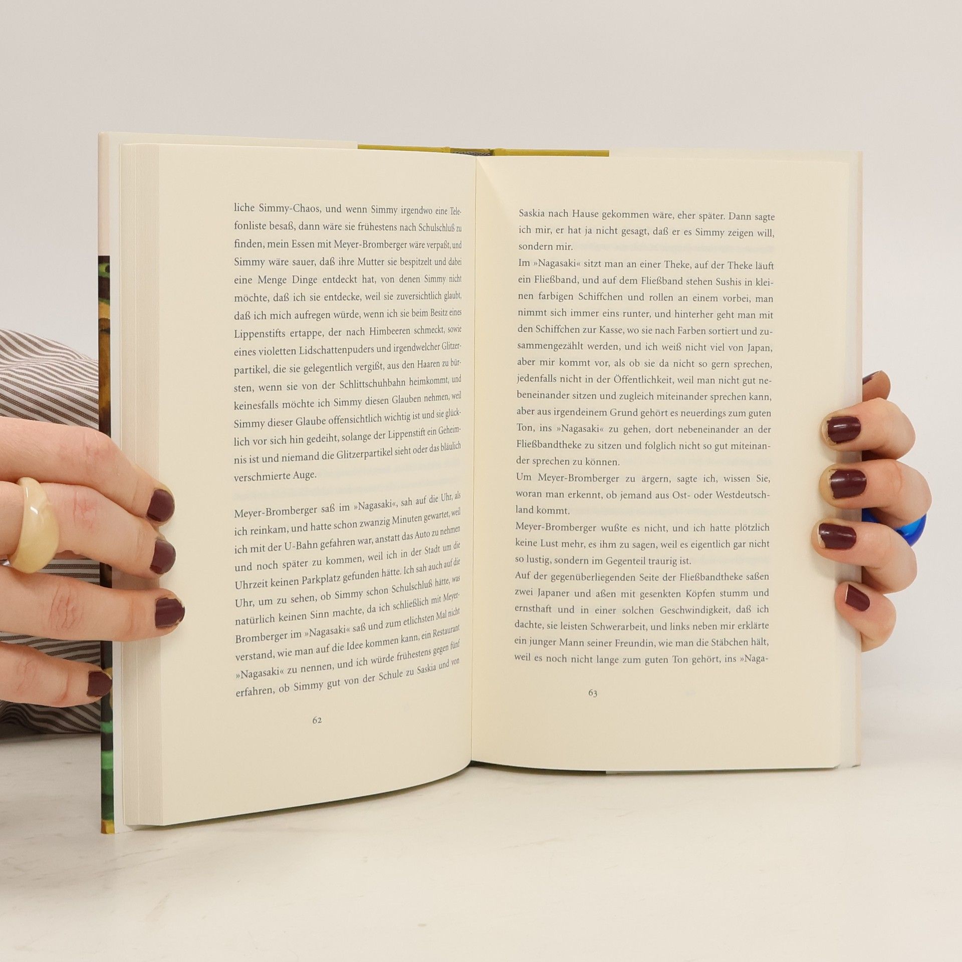Den Himmel kann man nicht abhängen - alles andere schon. Und oft tut man nur so, als ob das Leben normal wäre. Ein anonymer Anrufer bringt den Alltag einer Schriftstellerin aus dem Rhythmus. Er beschimpft sie mit einer eigentümlich warmen Stimme. Als ob nichts gewesen wäre, erledigt sie aber weiterhin ihre Post, geht mit Meyer-Bromberger, der sich um ihre Angelegenheiten kümmert, zum Sushi-Essen und überlegt, wie sie Simmy, ihrer sehr aufgeweckten Tochter, eine Tätowierung ausreden könnte. Auch wenn sich nichts wirklich verändert hat, ist doch alles anders geworden. Sie spürt die Angst im Rücken, fühlt sich beobachtet, und vielleicht gibt es ja auch jemanden, der sie ganz einfach abknallen will. Erst als sie sich eine Platte ihres Mannes Serge auflegt, eines Jazzmusikers, kann sie für kurze Zeit vergessen, dass nicht mehr alles in Ordnung ist. Beim Hören muss sie an Eddie denken, den genialen Geigenspieler, der gemeinsam mit Serge „Blue Heaven “komponierte. Eddie war ganz plötzlich tot und eine Legende -einer muss ihn, der mit seiner Geige ziemlich an den Himmel rankam, verraten haben. Er wurde einfach abgehängt. Aber das ist normal. Und als ob nichts gewesen wäre, klingelt wieder das Telefon.