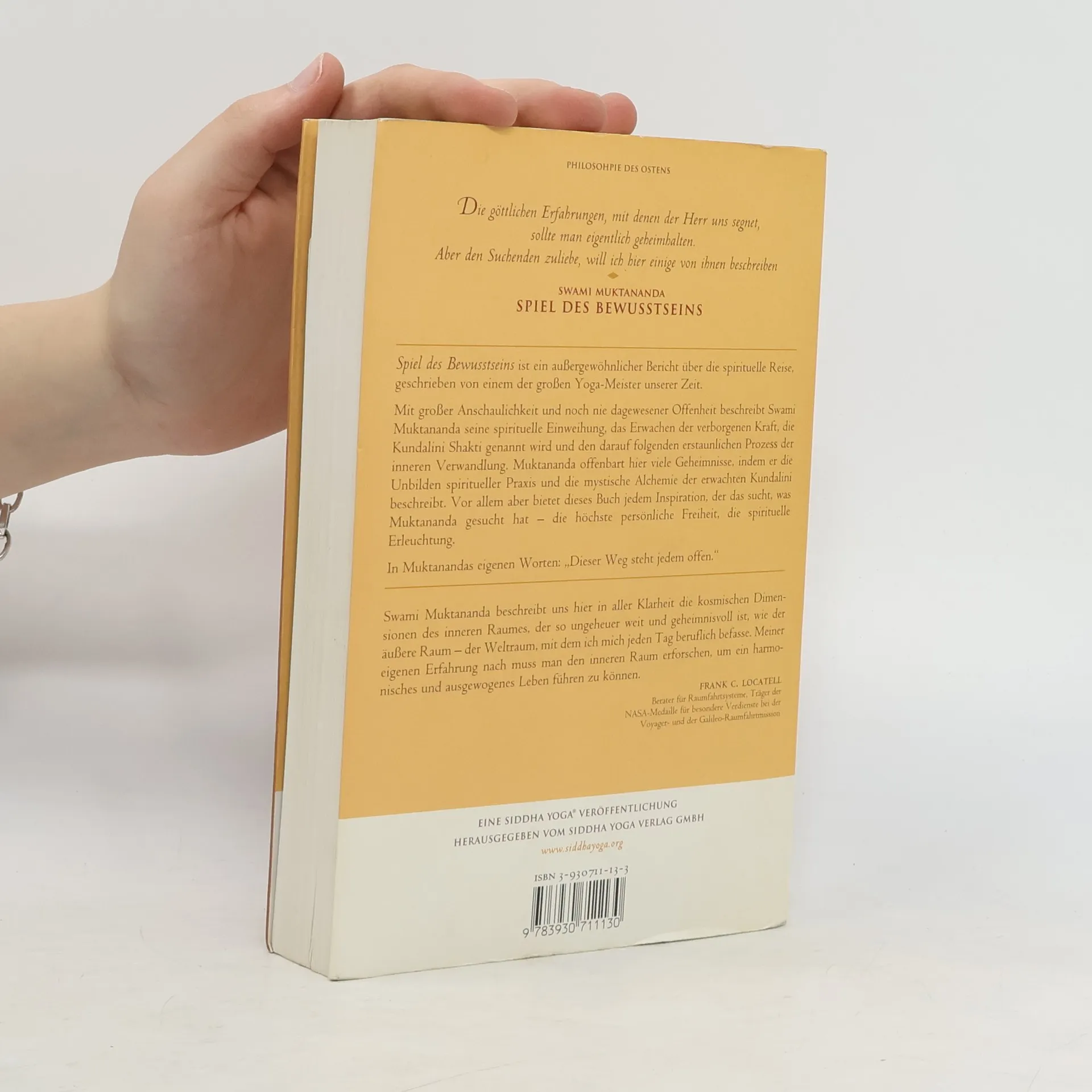 In den über dreißig Jahren seit seinem ersten Erscheinen ist „Spiel des Bewusstseins“ zu einem klassischen Werk geworden. Es ist das Vermächtnis eines großen spirituellen Meisters. Muktananda berichtet in beispielloser Großzügigkeit von seiner spirituellen Reise. Mit großer Anschaulichkeit und noch nie dagewesener Offenheit beschreibt er seine spirituelle Einweihung, das Erwachen der verborgenen Kraft, die Kundalini Shakti genannt wird, und den darauf folgenden erstaunlichen Prozess der inneren Verwandlung. In der Beschreibung der mystischen Alchemie der erwachten Kundalini und seiner eigenen spirituellen Übungen offenbart Muktananda viele Geheimnisse spiritueller Praxis. Dieses Buch bietet jedem Inspiration, der das sucht, was Muktananda gefunden, erfahren und verwirklicht hat - höchste persönliche Freiheit, die spirituelle Erleuchtung. „Dieser Weg steht jedem offen“, sagt Muktananda. Allein das Lesen dieser außergewöhnlichen Autobiographie kann eine Einweihung bedeuten. „Die göttlichen Erfahrungen, mit denen der Herr uns segnet, sollte man eigentlich geheim halten. Aber den Suchenden zuliebe will ich hier einige von ihnen beschreiben.“ Swami Muktananda