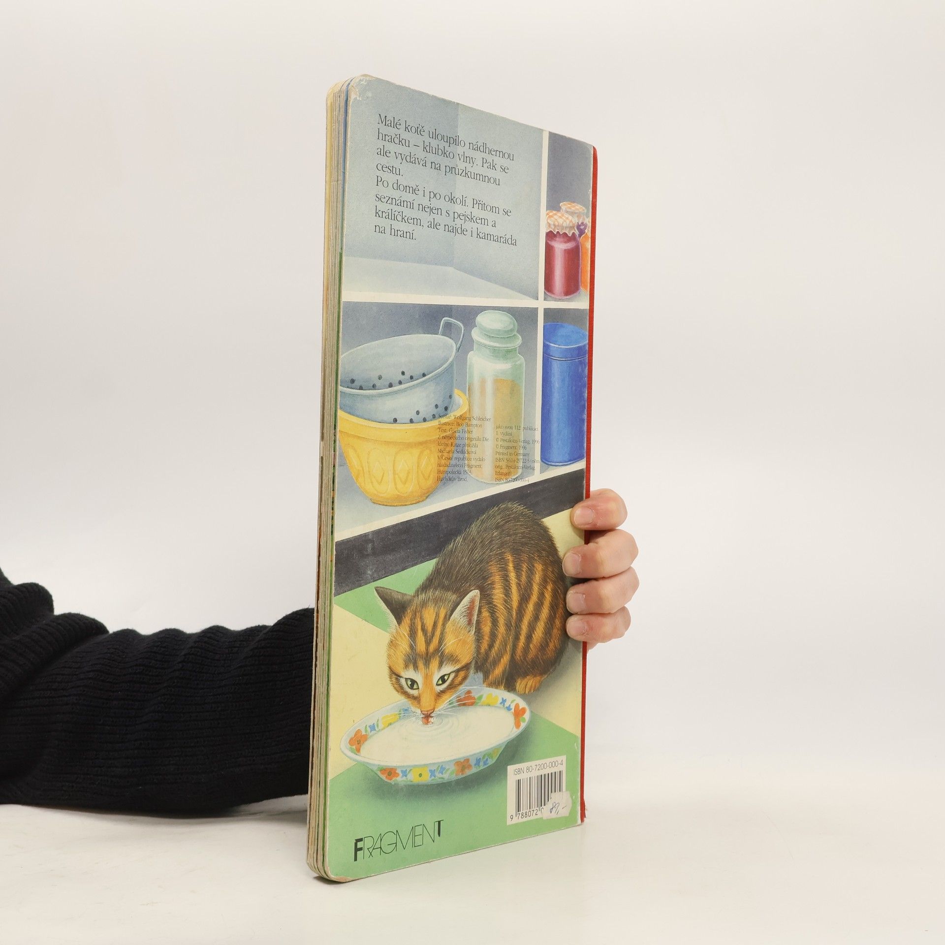 Leporelo velkého formátu o příhodách malého koťátka. Kotě uloupilo nádhernou hračku - klubko vlny - a vydává se s ním na průzkumnou cestu.