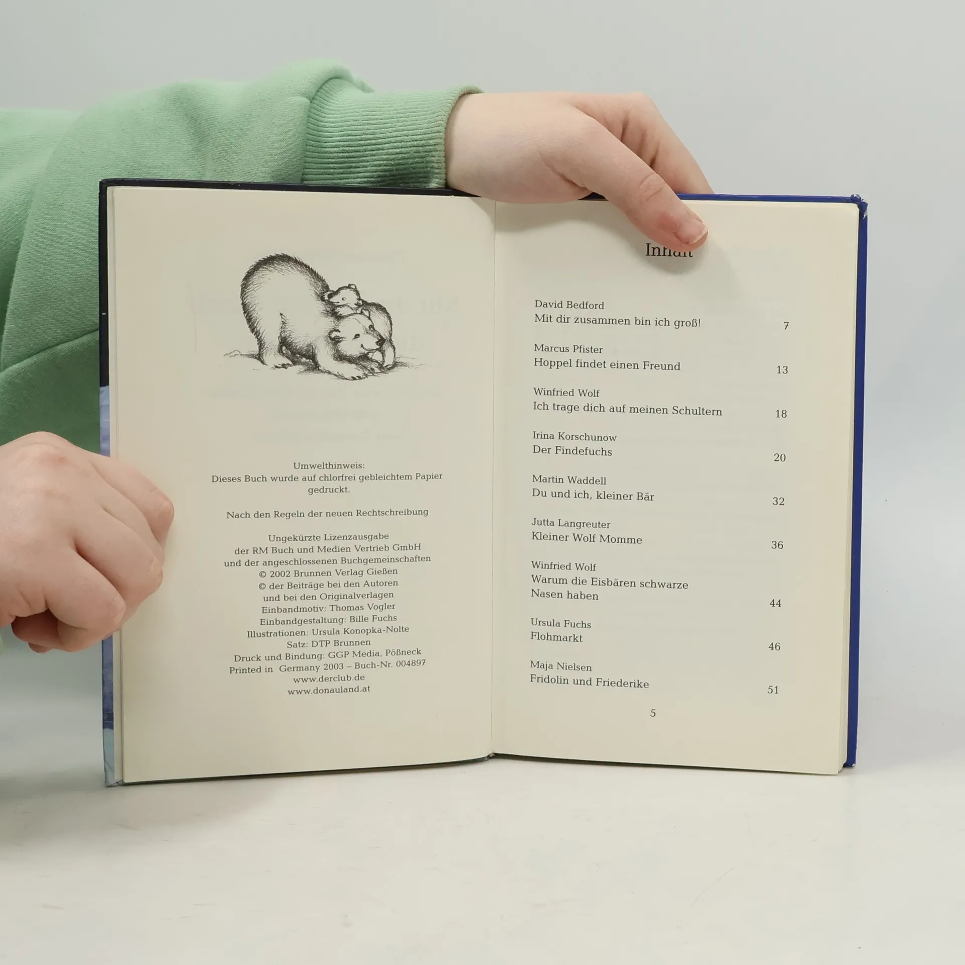 Old Mahony und der Braunbär, der kleine Wolf Momme und sein Rudel, eine fremde Füchsin und der einsame Findefuchs, der Eisbärenjunge Ole und viele, viele andere machen in diesem Buch auf ganz unterschiedliche Weise alle dieselbe Erfahrung: Gemeinsam lässt sich das Leben viel leichter meistern. Sie erleben, was es bedeutet, einander zu helfen, voneinander zu lernen, miteinander Spaß zu haben, füreinander da zu sein und sich aufeinander verlassen zu können. Und natürlich spüren sie auch, wie schön es ist, gute Freunde zu haben, zu lieben und geliebt zu werden. Aus dem Inhalt: Marcus Pfister: Hoppel findet einen Freund Maja Nielsen: Fridolin und Friederike Irina Korschunow: Der Findefuchs Tilde Michels: Wer am höchsten hüpfen kann Wolfram Hänel: Der kleine Mann und der Bär David Bedford: Mit dir zusammen bin ich groß! A. H. Benjamin: Lola und Max und der goldene Stern Jutta Langreuter: Kleiner Wolf Momme und andere Geschichten Mit liebevollen Illustrationen von Ursula Konopka-Nolte