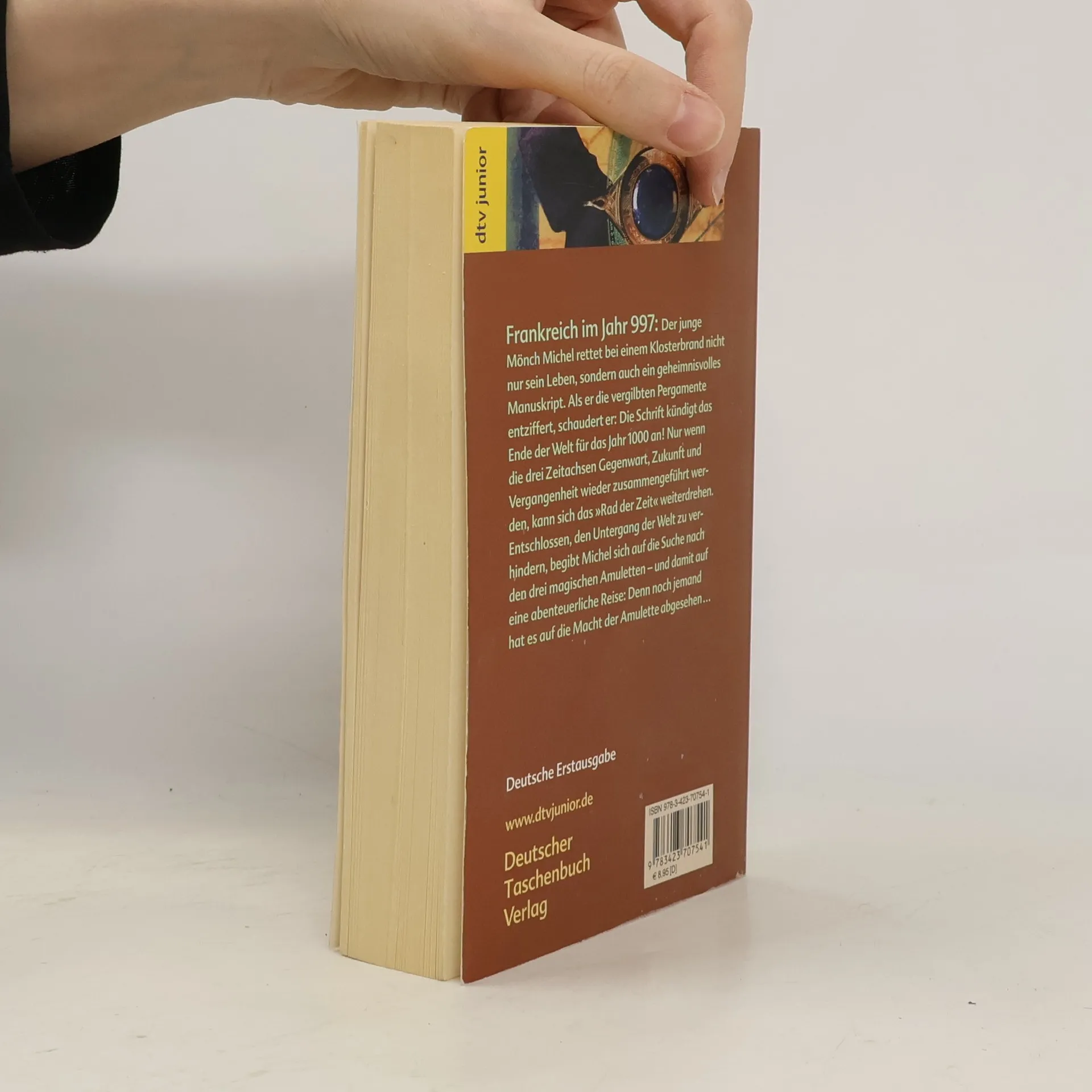 Ein spannender Mittelalterroman, der den Leser in seinen Bann zieht. Frankreich 997 n. Ch.: Der 15-jährige Mönch Michel rettet nach einem Klosterbrand nicht nur sein Leben, sondern auch eine geheimnisvolle Schrift. Mühevoll versucht er die vergilbten Pergamentblätter zu entziffern und erschaudert: Die Schrift kündigt das Ende der Welt für das Jahr 1000 an! Nur wenn es jemand schafft, die drei Zeitachsen - die Achse der Gegenwart, der Zukunft und der Vergangenheit - wieder zusammenzuführen, kann sich das »Rad der Zeit« weiterdrehen. Michel ist ratlos: Wie soll er sich die drei Achsen der Zeit vorstellen? Und vor allem: Wo befinden sie sich? Um mit der Last des Geheimnisses nicht ganz allein zu sein, vertraut er sich dem Spielmann Mattius an. Als die beiden auf eine Zeichnung mit drei sehr sonderbar anmutenden Amuletten stoßen, sind sie sich plötzlich sicher: Genau diese drei magischen Amulette müssen sie finden - auch wenn sie an noch so entlegenen Orten irgendwo auf der Welt versteckt liegen. Entschlossen, den Untergang der Welt zu verhindern, begeben sich Michel und Mattius in Begleitung der schönen Lucia auf die Suche - und damit auf eine abenteuerliche Reise: Denn noch jemand hat es auf die Macht der drei Amulette abgesehen ...
