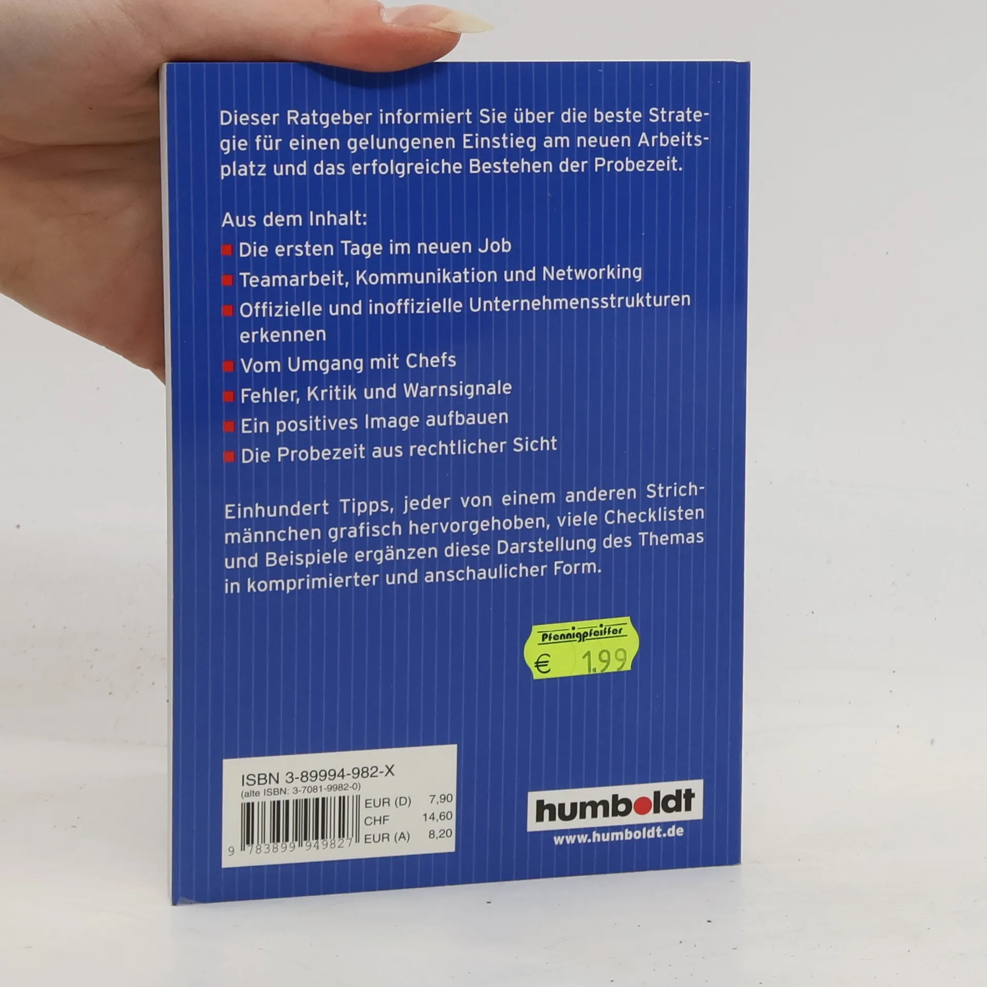 Dieser Ratgeber informiert Sie über die beste Strategie für einen gelungenen Einstieg am neuen Arbeitsplatz und das erfolgreiche Bestehen der Probezeit. Aus dem Inhalt: Die ersten Tage im neuen Job Teamarbeit, Kommunikation und Networking Offizielle und inoffizielle Unternehmensstrukturen erkennen Vom Umgang mit Chefs Fehler, Kritik und Warnsignale Ein positives Image aufbauen Die Probezeit aus rechtlicher Sicht 100 Tipps, viele Checklisten und Beispiele ergänzen diese Darstellung des Themas in komprimierter und anschaulicher Form!