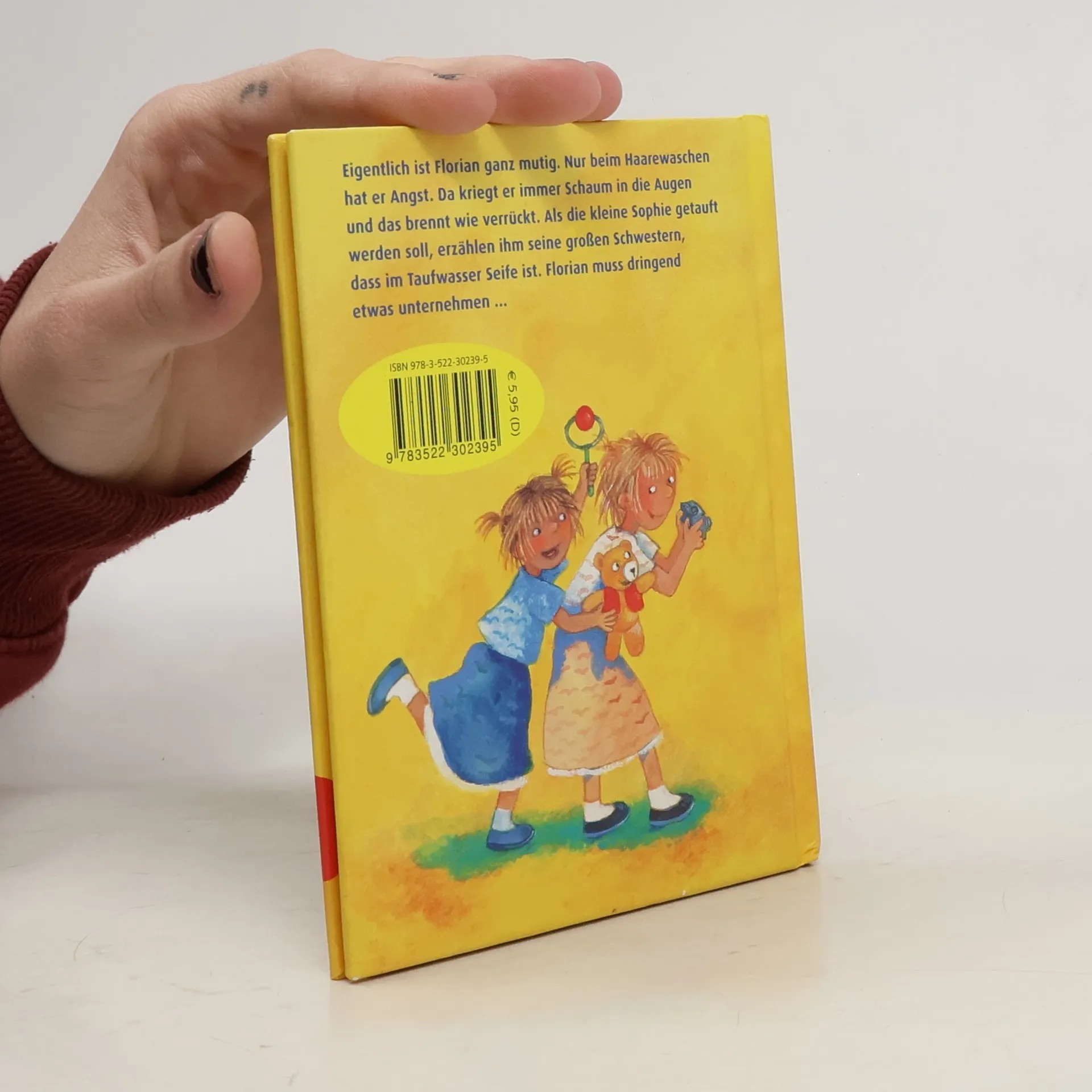 Eigentlich ist Florian ganz mutig. Nur beim Haarewaschen und Duschen hat er Angst. Da kriegt er immer Schaum in die Augen und das brennt wie Hölle. Kein Wunder, dass er sich bei der Taufe von seiner kleinen Schwester Sophie Sorgen macht. Aber dazu nimmt man ja zum Glück Wasser ohne Seife. Mini-Ausgabe im Format 11,6 x 15 cm von ISBN 978-3-522-30063-6