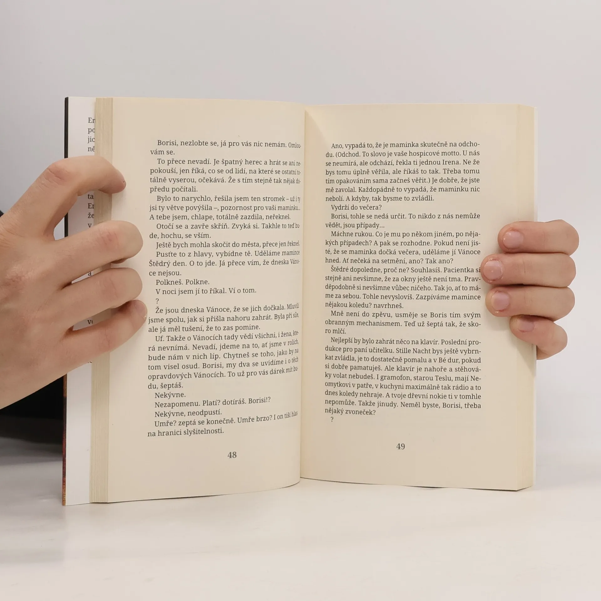 Nový román známého publicisty a spisovatele Aleše Palána zavádí čtenáře do prostředí domácího hospice. Ema, pracovnice domácího hospicu, který poskytuje péči umírajícím klientům v jejich domovech, zažívá během jediného dne několik zásadních životních zvratů. Po rozchodu se svým přítelem míří neplánovaně k umírající klientce paní Neomytkové a jejímu psychicky labilnímu synu Borisovi. Stará paní není jen pacientka, ale zná také tajemství propojující obě rodiny, které Emě až doposud zůstávalo skryté. Mladou ženu zaměstnává nejen starost o umírající, v patách je jí neustále studentka Zuzana, která si jako místo svého studijního projektu vybrala právě domácí hospic a jeho klienty. Ani Boris není Emě v péči o matku nápomocný, zvlášť když odejde z domu, a místo něj se přede dveřmi objeví policie… Aleš Palán citlivě zachycuje situace kolem odchodu nevyléčitelně nemocného člověka, poutavě a do hloubky odkrývá psychiku ženy procházející náročným životním obdobím a zároveň vedle existenciálních problémů odkrývá i ty celospolečenské, jako je dědictví komunismu či privatizace a „podnikání“ v devadesátých letech.