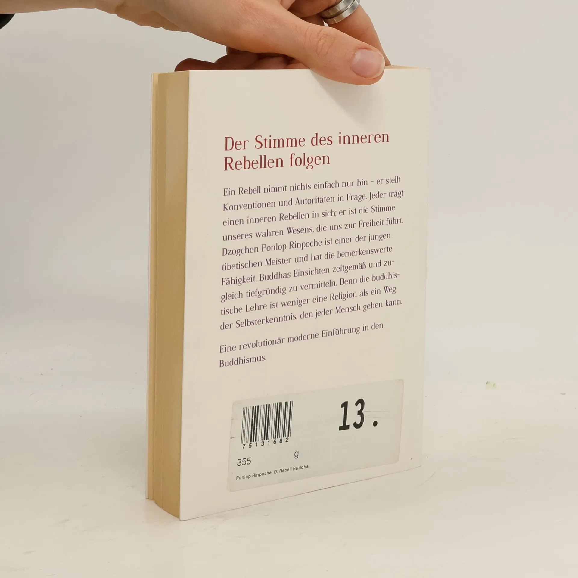 Dzogchen Ponlop Rinpoche vertritt einen modernen, leicht zugänglichen Buddhismus, ohne jedoch dessen Substanz preiszugeben. Er reist weltweit, um die buddhistische Lehre im Westen zu verankern. Ponlop ist überzeugt davon, dass jeder einen inneren Rebellen in sich trägt, aus dem er die Kraft schöpfen kann, sich von allen selbstauferlegten Zwängen zu befreien. Der junge Rinpoche zeigt, wie man sich seiner eigenen Stärke bewusst werden kann und seine wahren Potenziale erkennt und leben lernt. Intelligent und provokant legt er dar, dass Buddhas Einsichten die Grenzen von Religionen und Kulturen überschreiten und jedem Menschen Inspiration und Wegweiser sein können.