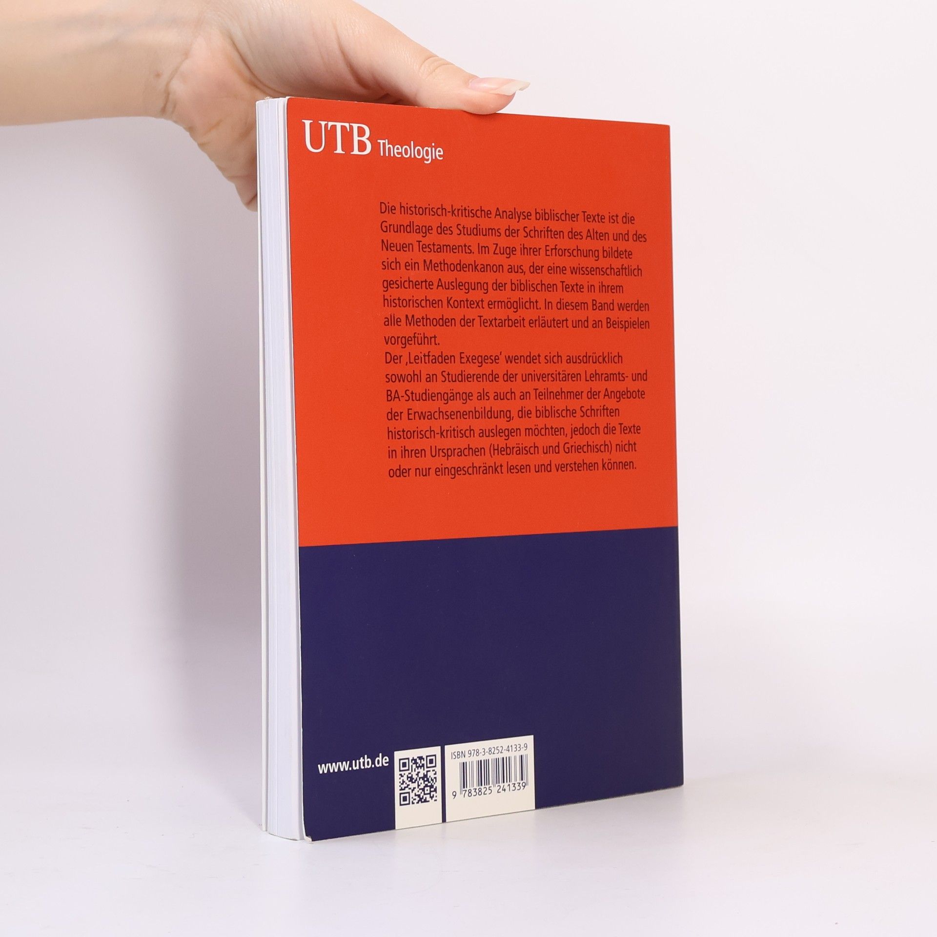Wege in das Buch der Bücher. Ein Lehrbuch mit Hilfen zum Verständnis der Bibeltexte und zur selbstständigen Exegese. Hier werden alle Voraussetzungen dafür geschaffen, um die Bibel selbstständig auszulegen, auch wenn man die Originalsprachen nur eingeschränkt beherrscht. Dazu geben die Autoren zahlreiche Methoden, Beispiele und Muster, auch für die Abfassung von Seminararbeiten. So macht der Band die für die Theologie zentralen Methoden gut nachvollziehbar, für BA- wie für Lehramtsstudierende. Historisch-kritische Auslegung kann in der praktischen Arbeit geübt werden.