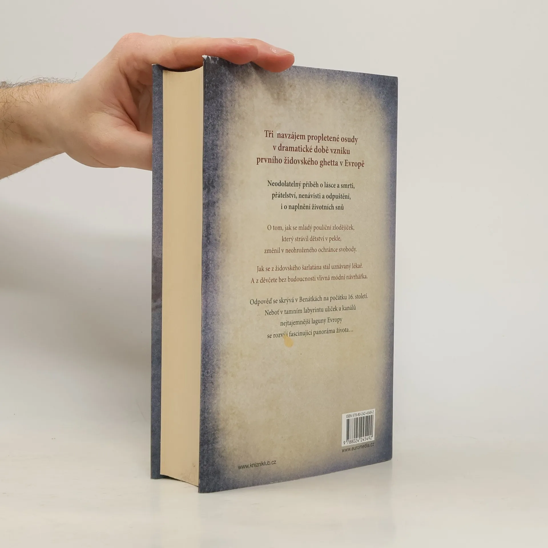 Tři navzájem propletené osudy v dramatické době vzniku prvního židovského ghetta v Evropě Neodolatelný příběh o lásce a smrti, přátelství, nenávisti a odpuštění, i o naplnění životních snů. O tom, jak se mladý pouliční zlodějíček, který strávil dětství v pekle, změnil v neohroženého ochránce svobody. Jak se z židovského šarlatána stal uznávaný lékař. A z děvčete bez budoucnosti vlivná módní návrhářka. Odpověď se skrývá v Benátkách na počátku 16. století. Neboť v tamním labyrintu uliček a kanálů nejtajemnější laguny Evropy, se rozvíjí fascinující panorama života…