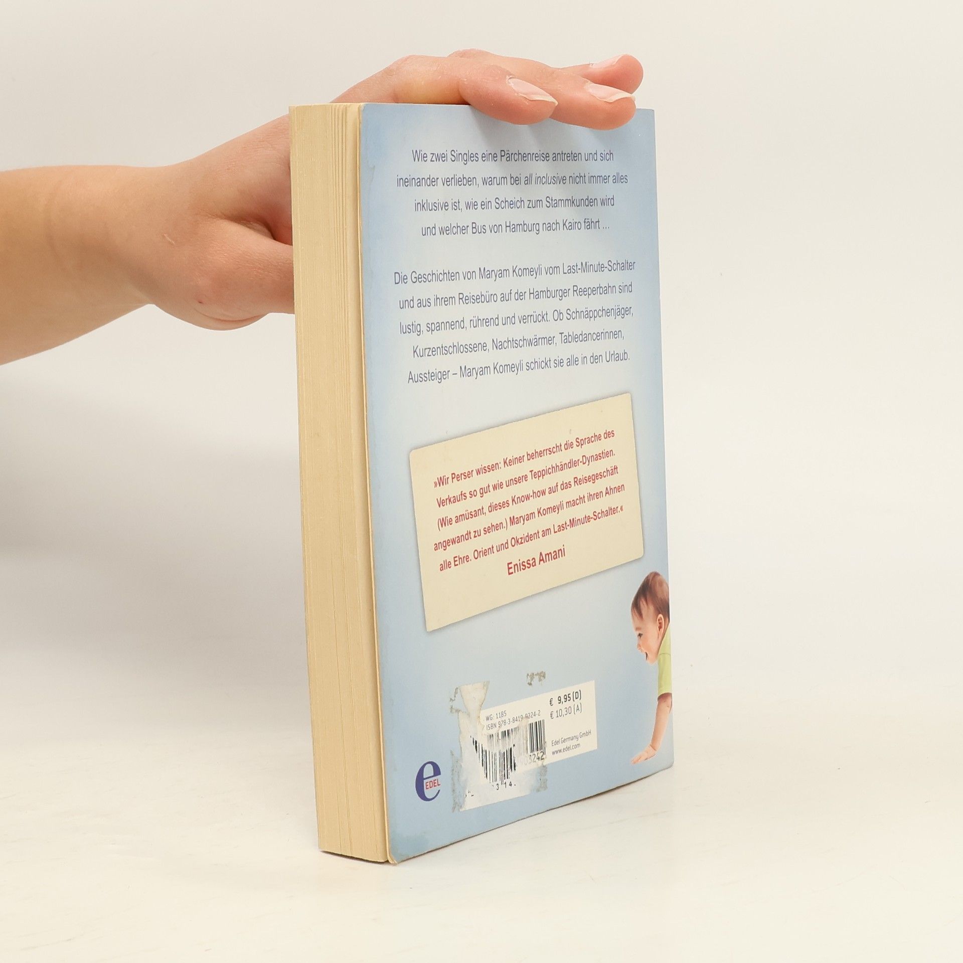 Wie zwei Singles eine Pärchenreise antraten und sich ineinander verliebten, wie der Scheich von Ras al-Chaima zum Stammkunden wurde, warum Sardinien plötzlich in Spanien lag und welcher Bus von Hamburg nach Kairo fährt … Die Geschichten von 25 Jahren hinterm Last-Minute-Schalter von Maryam Komeyli sind lustig, spannend, rührend und verrückt. Obwohl sie 17 Stunden täglich arbeitet, hat sie zwei Babys: ihren Schalter am Hamburg Airport und ein Reisebüro auf der Reeperbahn. Ob Schnäppchenjäger, Kurzentschlossene, Nachtschwärmer, Prostituierte, Aussteiger – Maryam Komeyli schickt sie alle in den Urlaub.