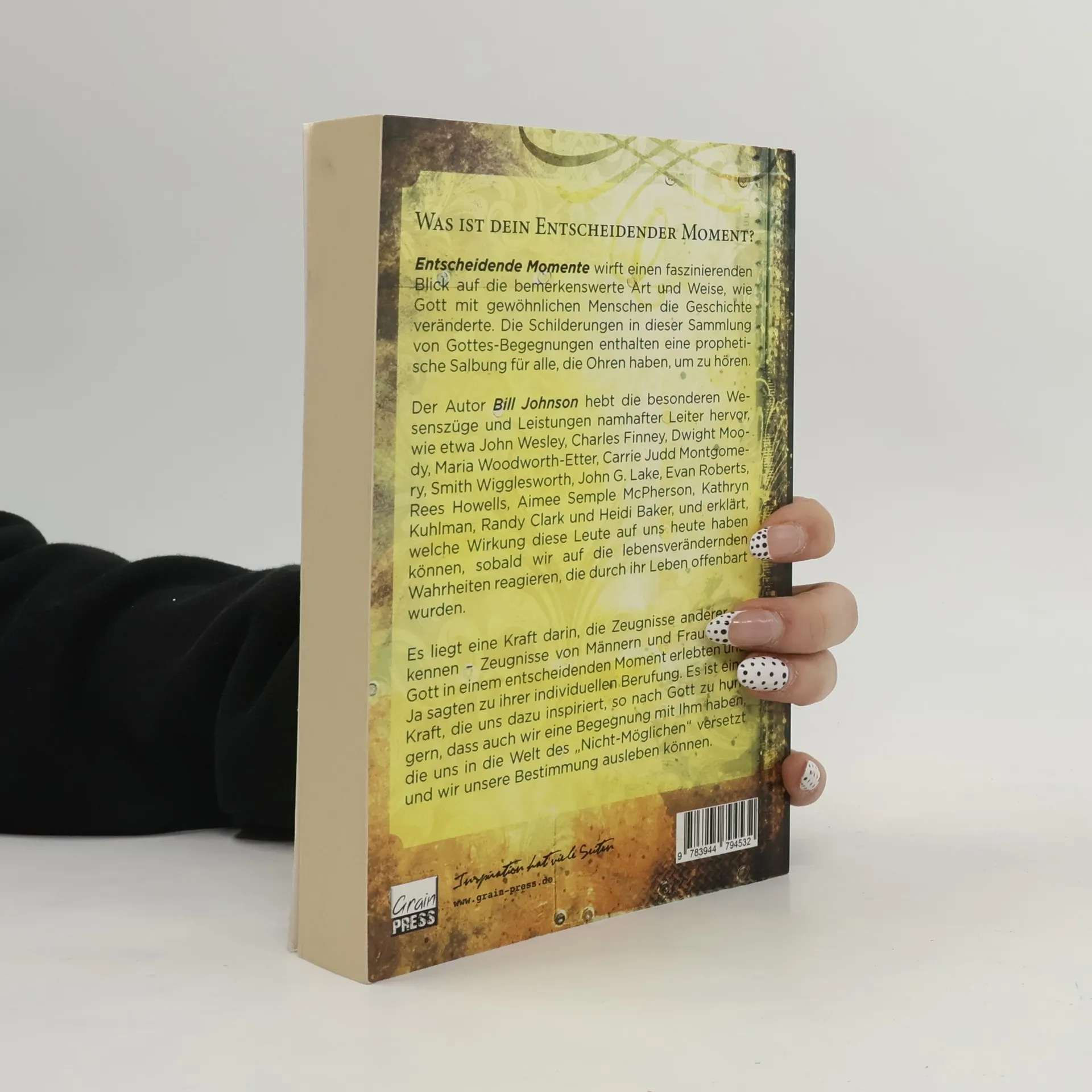 Entscheidende Momente bietet einen faszinierenden Einblick in die Art und Weise, wie Gott durch gewöhnliche Menschen Geschichte schreibt und gleichzeitig die Zukunft offenbart. Das Buch zeigt, was Gott in jedem von uns bewirken möchte, um Seine Pläne zu verwirklichen – heute und in den kommenden Jahren. Die Erzählungen über Gottes-Begegnungen sind mit einer prophetischen Salbung versehen, die für alle zugänglich ist, die bereit sind zuzuhören. Der Autor Bill Johnson hebt die besonderen Merkmale und Errungenschaften bedeutender Führer wie John Wesley, Charles Finney, Dwight Moody und viele andere hervor und erläutert, wie deren Leben auch heute noch Einfluss auf uns haben kann. Indem wir auf die lebensverändernden Wahrheiten reagieren, die durch ihre Erfahrungen offenbar werden, können wir inspiriert werden, unsere eigene Berufung zu erkennen. Die Zeugnisse dieser Männer und Frauen, die Gott in entscheidenden Momenten begegneten, ermutigen uns, nach Gott zu hungern und auf eine Weise zu leben, die uns in die Welt des „Nicht-Möglichen“ führt. Was wird dein Entscheidender Moment sein?
