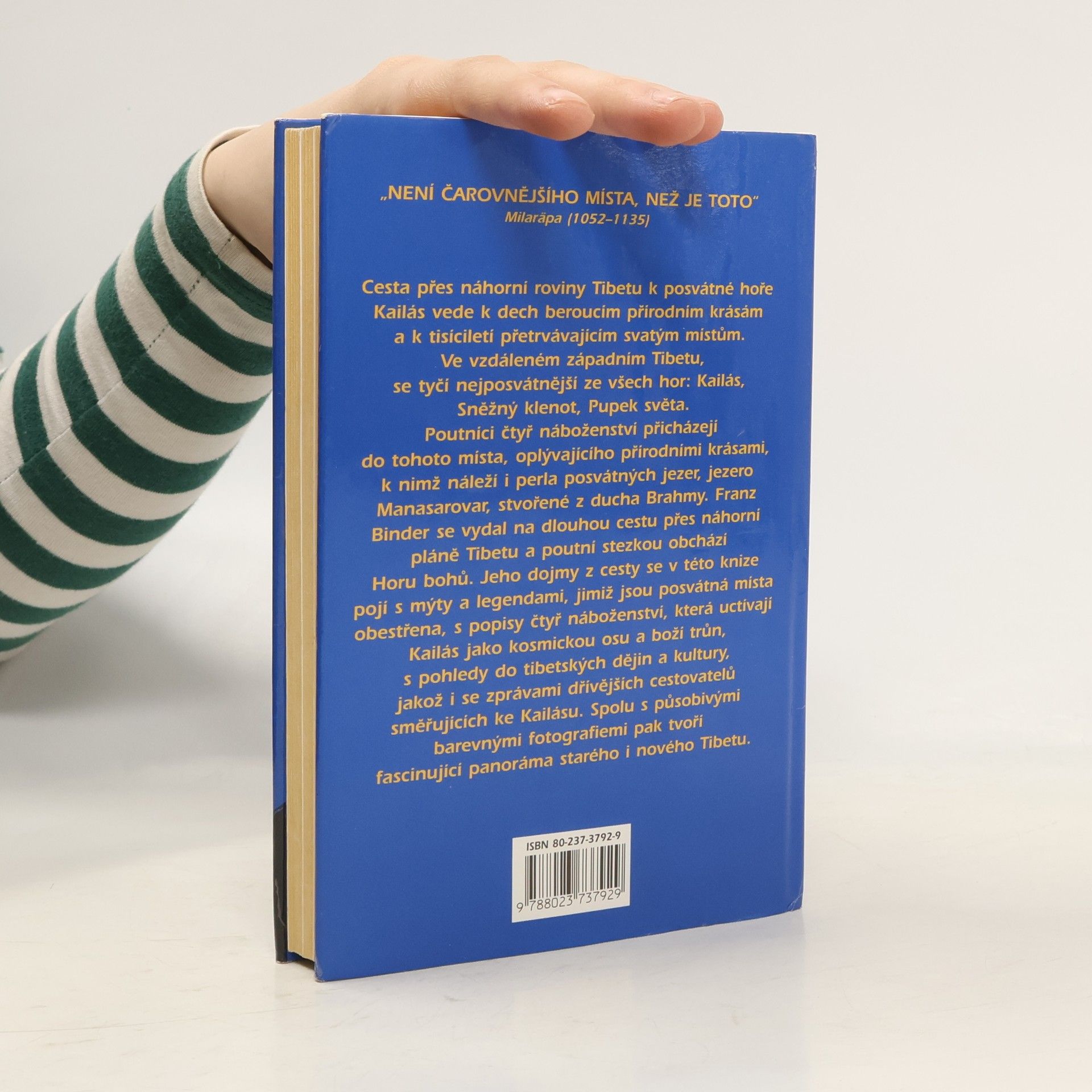 Cesta na Kailás. Cesta přes náhorní roviny Tibetu k posvátné hoře Kailás vede k dech beroucím přírodním krásám a k tisíciletí přetrvávajícim svatým místům. Ve vzdáleném západním Tibetu, se tyčí nejposvátnější ze všech hor: Kailás, Sněžný klenot, Pupek světa. Poutníci čtyř náboženství přichádzejí do tohoto místa, oplývajícího přírodními krásami, k nimž náleží i perla posvátných jezer, jezero Manasarovar, stvořené z ducha Brahmy. Franz Binder se vydal na dlouhou cestu přes náhorní pláně Tibetu a poutní stezkou obchádzí Horu bohů. Jeho dojmy z cesty se v této knize pojí s mýty a legendami, jimiž jsou posvátná místa obestřena, s popisy čtyř náboženství, která uctívají Kailás jako kosmickou osu a boží trůn, s pohledy do tibetských dějin a kultury, jakož i se zprávami dřívějších cestovatelů směřujících ke Kailásu. Spolu s působivými barevnými fotografiemi pak tvoří fascinujíci panoráma starého i nového Tibetu. Kniha též seznamuje s vývojem náboženských proudů v Tibetu (buddhismus, hinduismus, džinismus, bönismus) a s jedním z náboženských center - posvátnou horou Kailás v Tibetské náhorní plošině.