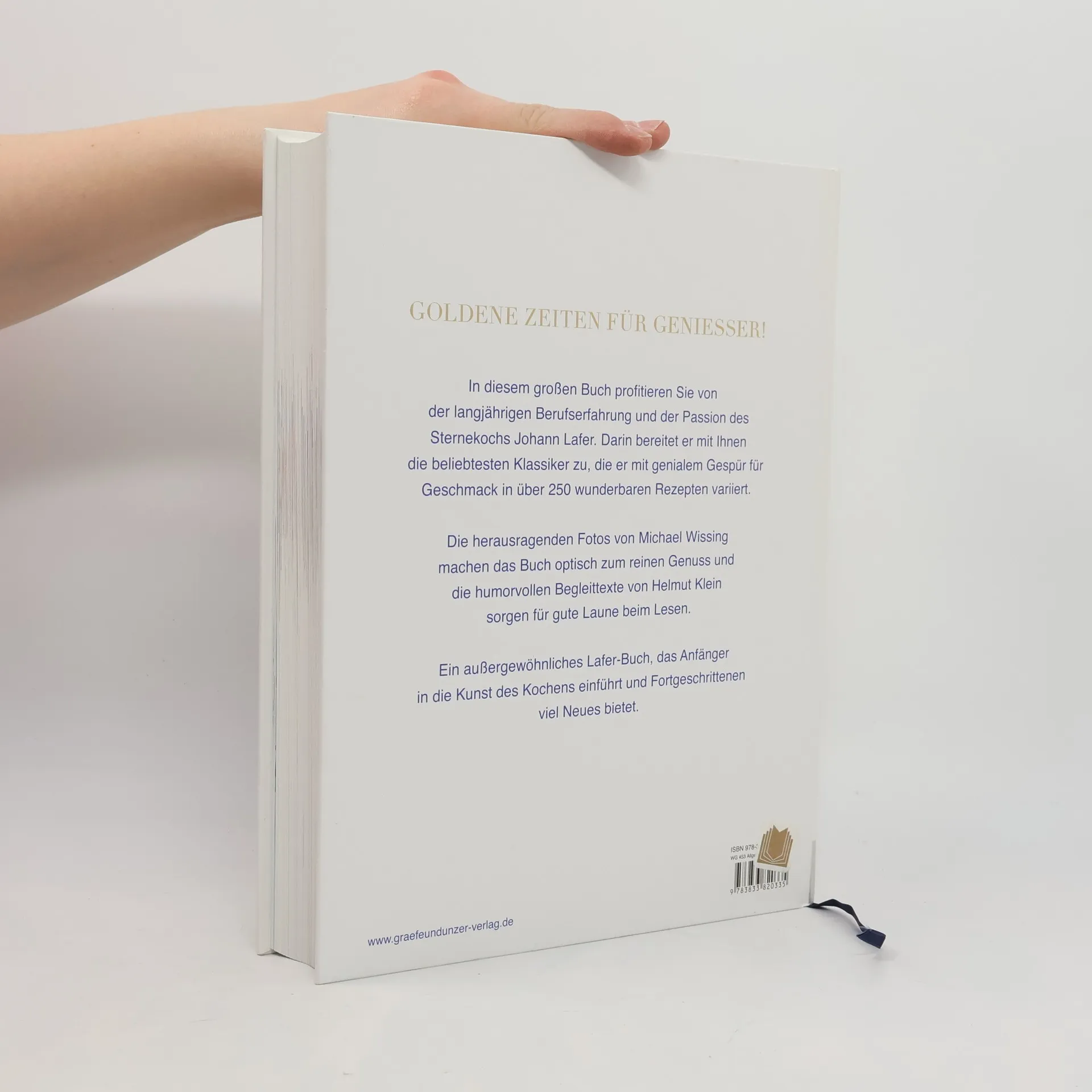 Johann Lafer präsentiert hier die Rezepte, die er liebt. In 60 Kapiteln werden ausgewählte Klassiker Schritt für Schritt in Bild und Text vorgestellt. Darauf folgen über 300 raffinierte Varianten, vom Starkoch mit genialen Gespür für Geschmack entwickelt. Da werden Bratkartoffeln mit Spargel und Bärlauch kombiniert oder aus Süßkartoffeln mit Walnüssen bereitet. Die wunderbar sahnige Eiscreme lockt in zarten Pastellfarben. Frikadellen gibt es klassisch, aber auch sehr fein aus gehacktem Lachs oder Lamm. So geht es weiter mit knusprigen Frühlingsröllchen, cremigen Gemüsesuppen, dem allerbesten Krustenbraten, zarter Panna cotta ... und, und, und. Durch die verführerischen Fotos kann man kann gar nicht aufhören zu blättern. Das Schöne ist, dass es ganze 480 Seiten dauert, bis man beim letzten Rezept, der umwerfenden Zabaione, ankommt. Ein Buch für Genießer, für Anfänger wie Fortgeschrittene, die Johann Lafer in die hohe Kunst der einfachen Küche einführt.