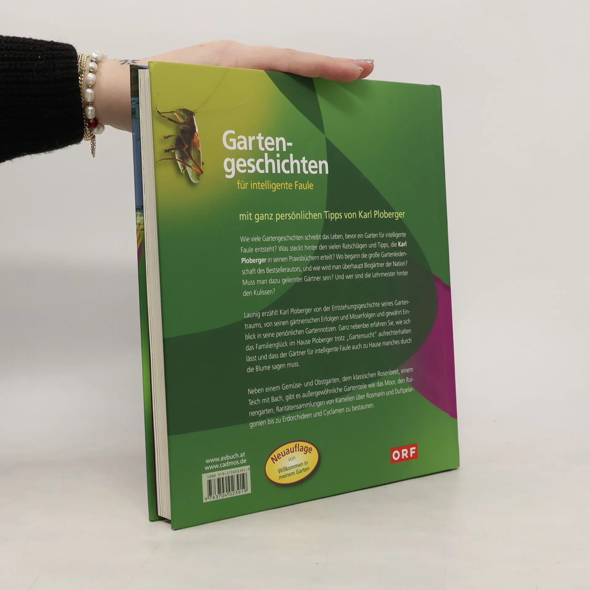 Für neugierige Fans öffnet Karl Ploberger immer wieder seine Gartentüre. In seinem Buch „Gartengeschichten für intelligente Faule“ – eine überarbeite, komplett neu gestaltete Neuauflage des Werkes „Willkommen in meinem Garten“ – gewährt er allen und zu jeder Zeit Einblick in sein ganz persönliches Reich. Was verbirgt sich hinter den vielen Ratschlägen und Tipps, die der Biogärtner in seinen Praxisbüchern gibt? Hat der Autor ein Stück englische Gartengestaltung auf eigenem Grund und Boden wahrgemacht? Wird bei ihm wirklich ganz biologisch gegärtnert? Der 2.500 m² große Garten hat Einiges zu bieten: neben einem Gemüse- und Obstgarten, dem klassischen Rosenbeet und einem Teich mit Bach, findet der Besucher auch außergewöhnliche Gartenteile wie das Moor, den Ruinengarten, Blumenwiesen und Raritätensammlungen von Kamelien und Rosmarin über Duftpelargonien bis zu Erdorchideen und Zyklamen. Glashäuser, Kompost und ein Umtopfplatz dürfen nicht fehlen und das Gartenhäuschen zwischen üppigen Blumen sorgt für Stunden der Muße. Launig erzählt Karl Ploberger von seinen gärtnerischen Erfolgen und Misserfolgen, von der Entstehungsgeschichte seines Gartentraums und gewährt Einblick in seine Gartennotizen. Auch gibt er diesmal ganz persönliche Praxistipps preis.