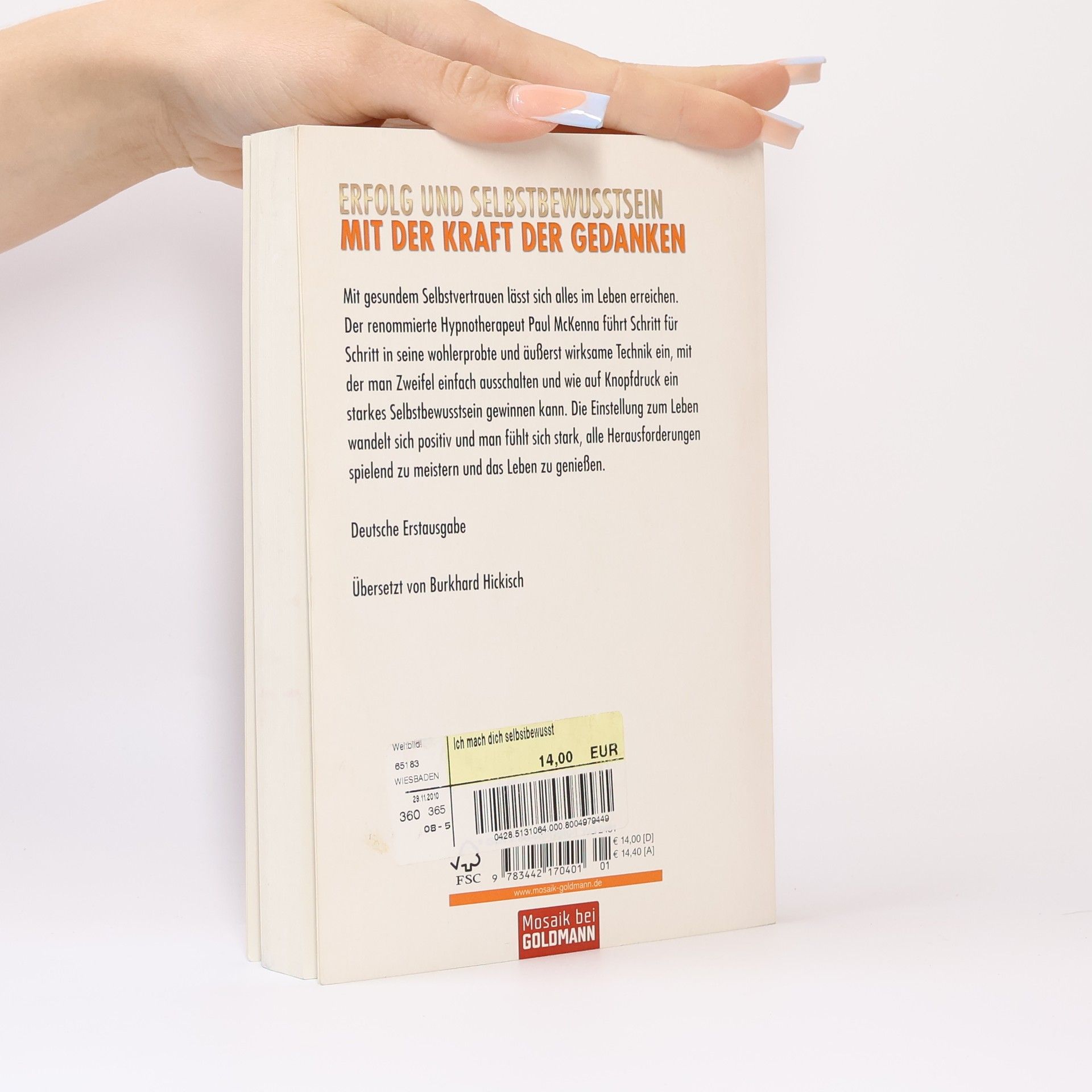 Mit der Kraft der Gedanken zu einem selbstbewussteren,glücklicheren Leben Mit gesundem Selbstvertrauen lässt sich alles im Leben besser meistern. Der renommierte Hypnotherapeut Paul McKenna führt Schritt für Schritt in eine wohlerprobte und äußerst wirksame Technik ein, mit der man Zweifel einfach ausschalten und wie auf Knopfdruck ein starkes Selbstbewusstsein gewinnen kann. Die Mind-Programming-CD vertieft die Motivation und schenkt zusätzlichen Optimismus. Der Erfolg gibt ihm Recht: 6 Millionen Menschen weltweit haben mit McKennas Methode ihre Ziele erreicht. Mit Gratis-CD – eingesprochen von einem erfahrenen deutschen Hypnotiseur.