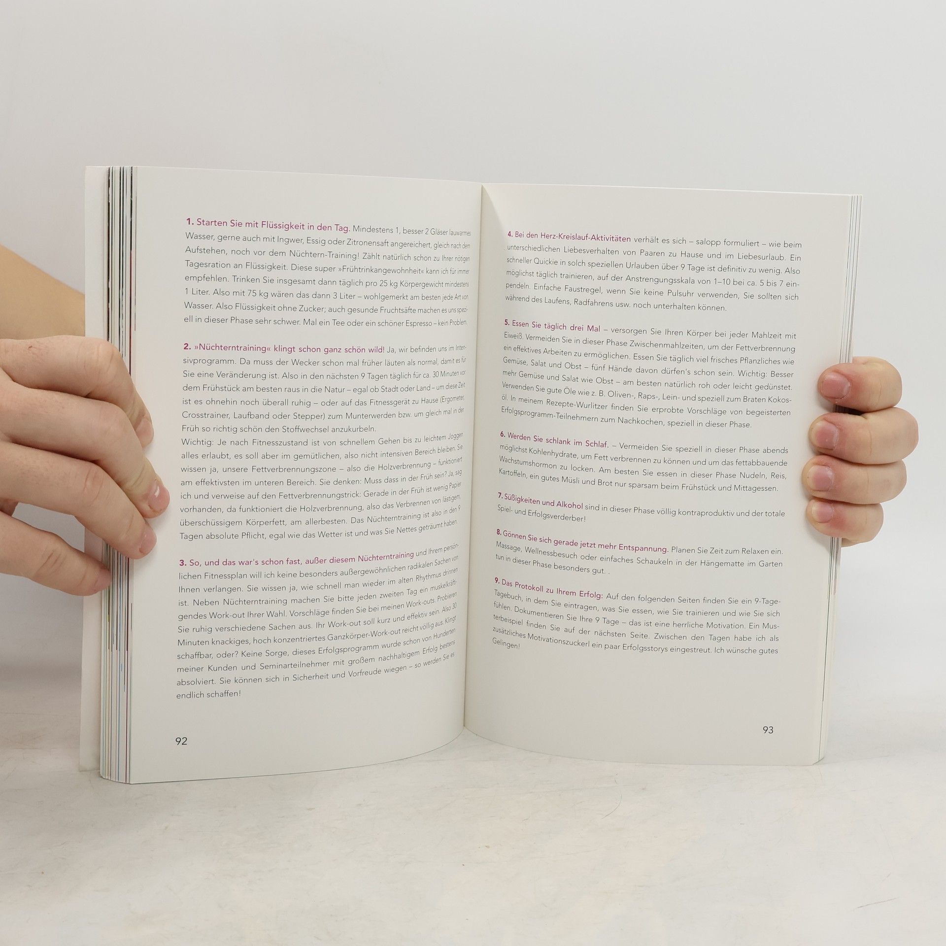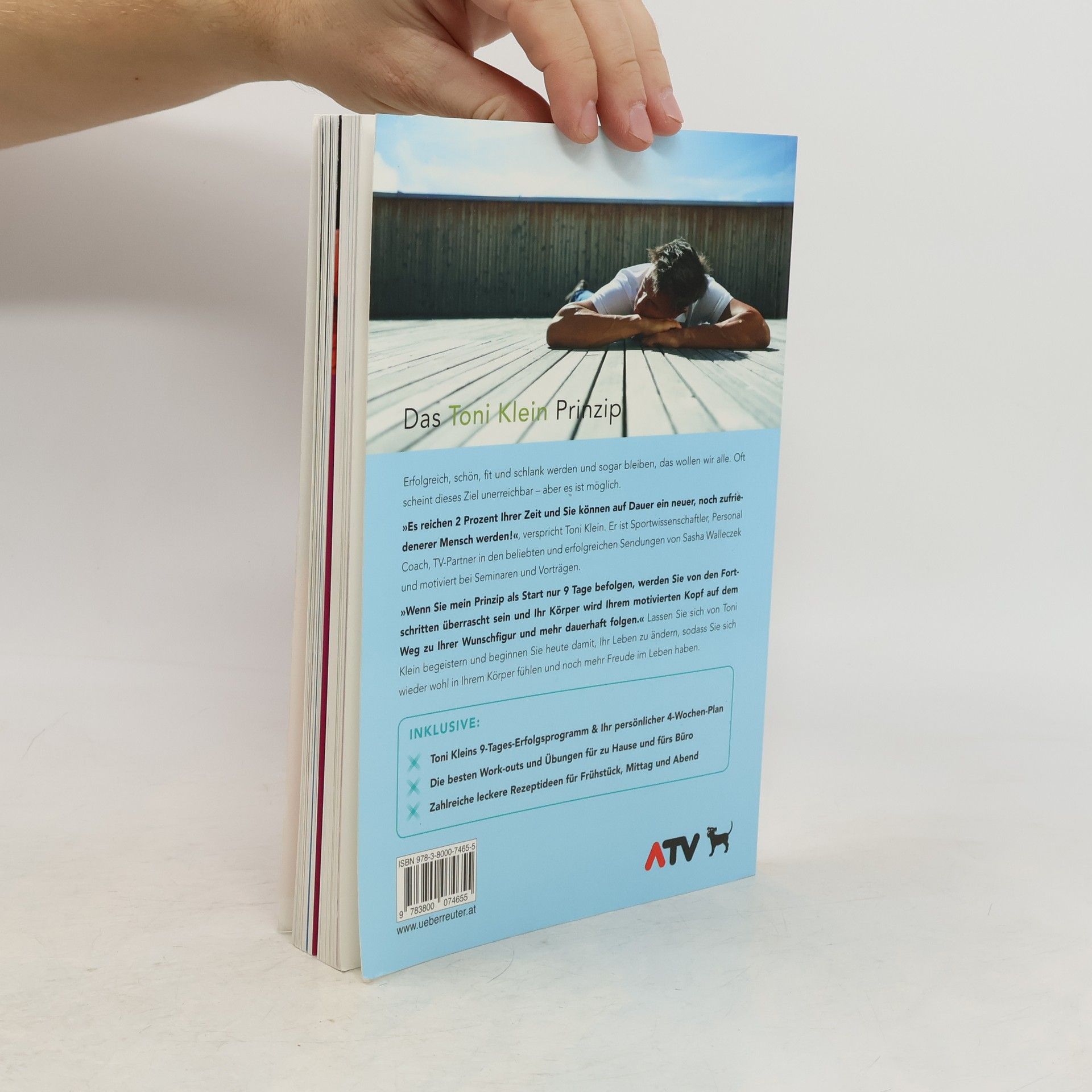 Toni Klein weiß wie man motiviert. Nicht umsonst ist er der TV-Partner in den beliebten und erfolgreichen Sendungen von Sasha Walleczek. Er schreibt in seinem Buch, dass bereits 2 Prozent der Lebenszeit reichen, um fit zu bleiben. Er ist von dem, was er tut, begeistert. Diese Begeisterung steckt an und hilft die Hebel im Kopf umzustellen, um sein Leben zu ändern. Toni Klein verspricht: 'Wenn Sie mein Prinzip nur 9 Tage befolgen, sind Sie ein anderer Mensch und auf dem besten Weg zu Ihrer Wunschfigur und zu mehr Lebensfreude.'