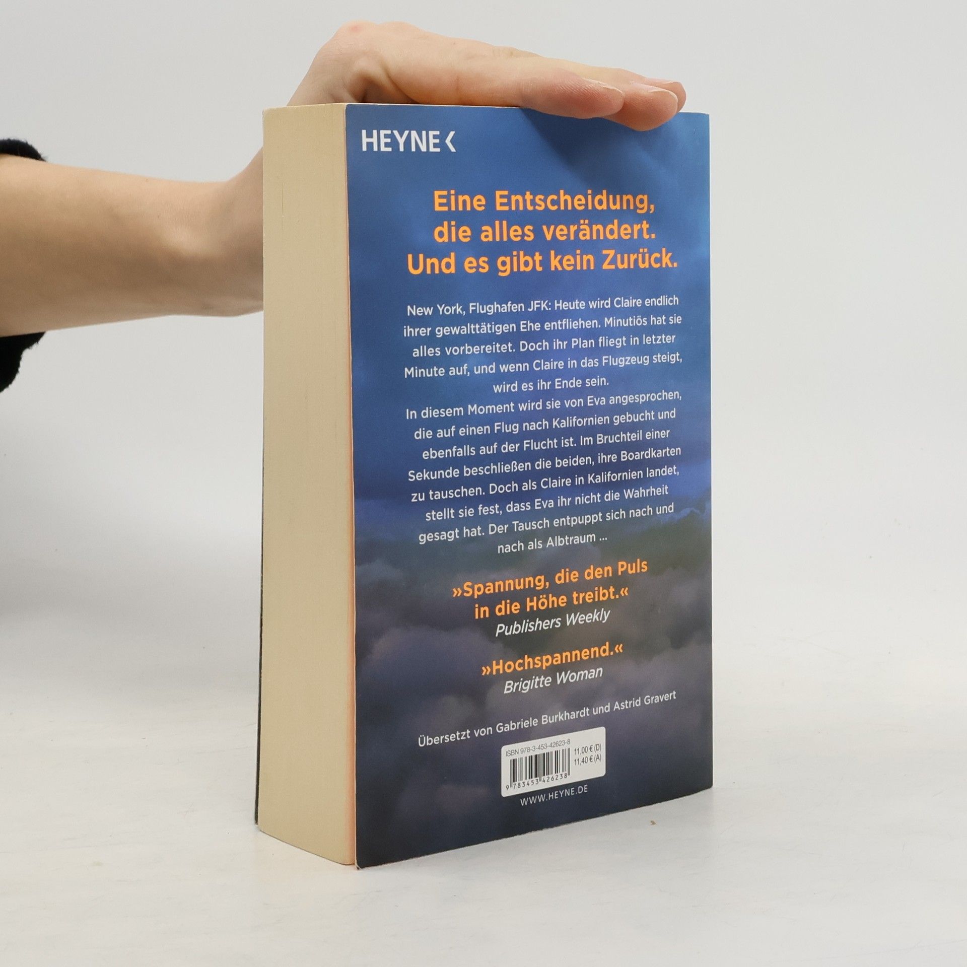 Zwei Frauen auf der Flucht. Eine Entscheidung, die alles verändert. Und kein Weg zurück. New York, Flughafen JFK: Heute wird Claire endlich ihrer gewalttätigen Ehe entfliehen. Minutiös hat sie alles vorbereitet. Doch ihr Plan fliegt in letzter Minute auf, und wenn Claire in das Flugzeug steigt, wird es ihr Ende sein. In diesem Moment wird sie von Eva angesprochen, die auf einen Flug nach Kalifornien gebucht und ebenfalls auf der Flucht ist. Im Bruchteil einer Sekunde beschließen die beiden, ihre Bordkarten zu tauschen. Doch als Claire in Kalifornien landet, stellt sie fest, dass Eva ihr nicht die Wahrheit gesagt hat. Der Tausch entpuppt sich nach und nach als Albtraum ...