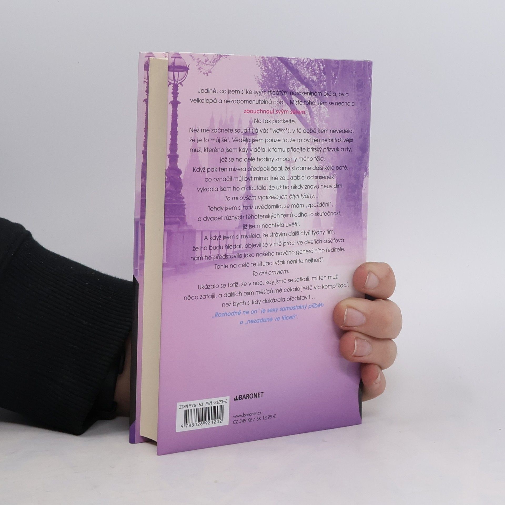 Jediné, co jsem si ke svým třicátým narozeninám přála, byla velkolepá a nezapomenutelná noc… Místo toho jsem se nechala zbouchnout svým šéfem. No tak počkejte. Než mě začnete soudit (já vás *vidím*), v té době jsem nevěděla, že je to můj šéf. Věděla jsem pouze to, že to byl ten nejpřitažlivější muž, kterého jsem kdy viděla, k tomu přidejte britský přízvuk a rty, které se na celé hodiny zmocnily mého těla. Když pak ten mizera předpokládal, že si dáme další kolo poté, co označil můj byt mimo jiné za „krabici od sušenek“, vykopla jsem ho a doufala, že už ho nikdy znovu neuvidím. To mi ovšem vydrželo jen čtyři týdny… Tehdy jsem si totiž uvědomila, že mám ‚zpoždění‘ a dvacet různých těhotenských testů odhalilo skutečnost, jíž jsem nechtěla uvěřit. A když jsem si myslela, že strávím další čtyři týdny tím, že ho budu hledat, objevil se v mé práci v dveřích, a nadřízený nám ho představil jako našeho nového generálního ředitele. Tohle na celé té situace však není to nejhorší. To ani omylem. Ukázalo se totiž, že v noc, kdy jsme se setkali, mi ten muž něco zatajil, a dalších osm měsíců mě čekalo ještě víc komplikací, než bych si kdy dokázala představit…