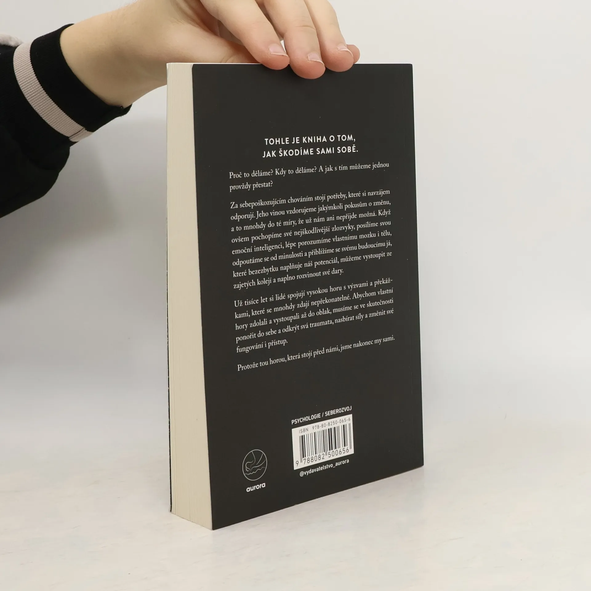 Tato kniha se zaměřuje na to, jak si nevědomky škodíme a proč k tomu dochází. Kdy se sebepoškozující chování objevuje a jak ho můžeme nadobro překonat? Jeho příčinou jsou protichůdné potřeby, které nás často brzdí ve snaze změnit svůj život, až si začneme myslet, že změna není možná. Pokud se však dokážeme podívat na své škodlivé zvyky zblízka, zvýšit svou emoční inteligenci, lépe pochopit fungování vlastního těla a mysli, odpoutat se od minulosti a přiblížit se své budoucí verzi, která plně využívá svůj potenciál, můžeme se osvobodit z těchto vzorců chování a rozvinout své schopnosti naplno. Lidé si již tisíce let spojují vysoké hory s překážkami, které se zdají nepřekonatelné. Abyste však zdolali svou vlastní horu a dosáhli vrcholu, musíte nejprve zaměřit pohled do nitra, odhalit svá traumata, nabrat sílu a změnit svůj přístup. Protože tou největší horou, kterou musíte překonat, jste ve skutečnosti vy sami.