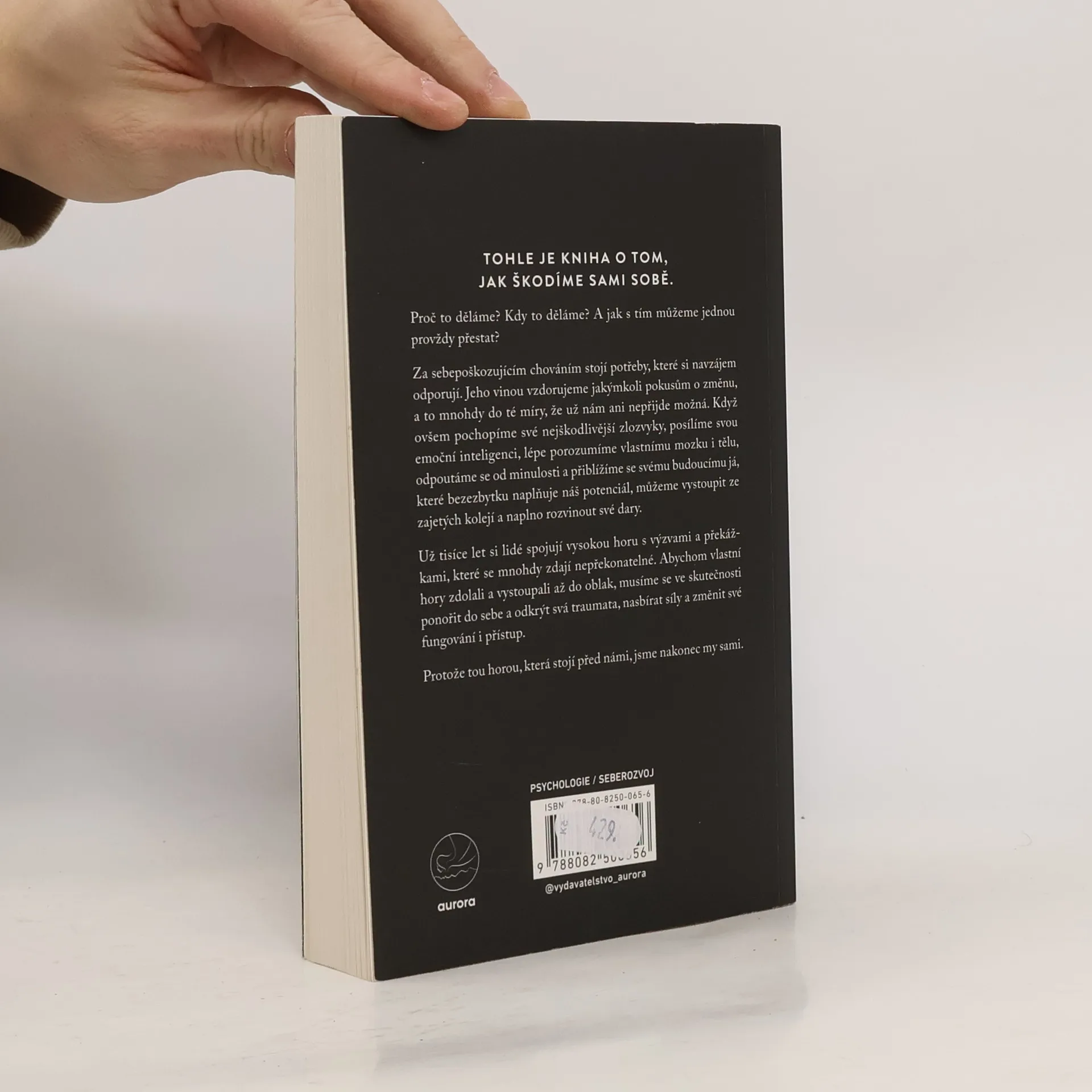 Tato kniha se zaměřuje na to, jak si nevědomky škodíme a proč k tomu dochází. Kdy se sebepoškozující chování objevuje a jak ho můžeme nadobro překonat? Jeho příčinou jsou protichůdné potřeby, které nás často brzdí ve snaze změnit svůj život, až si začneme myslet, že změna není možná. Pokud se však dokážeme podívat na své škodlivé zvyky zblízka, zvýšit svou emoční inteligenci, lépe pochopit fungování vlastního těla a mysli, odpoutat se od minulosti a přiblížit se své budoucí verzi, která plně využívá svůj potenciál, můžeme se osvobodit z těchto vzorců chování a rozvinout své schopnosti naplno. Lidé si již tisíce let spojují vysoké hory s překážkami, které se zdají nepřekonatelné. Abyste však zdolali svou vlastní horu a dosáhli vrcholu, musíte nejprve zaměřit pohled do nitra, odhalit svá traumata, nabrat sílu a změnit svůj přístup. Protože tou největší horou, kterou musíte překonat, jste ve skutečnosti vy sami.