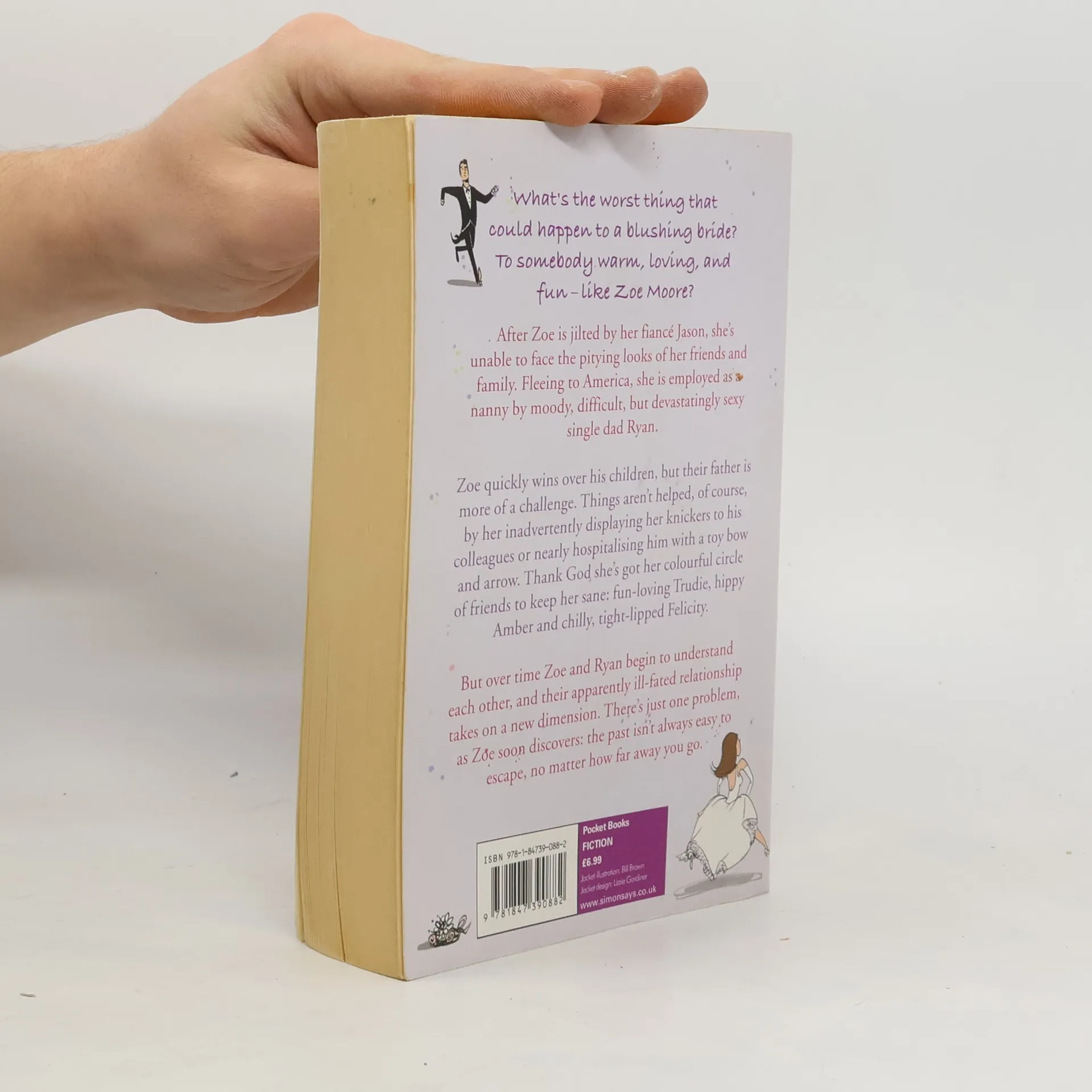 What’s the worst thing that could happen to a blushing bride?After Zoe is jilted by her fiancé Jason, she’s unable to face the pitying looks of her friends and family any longer.Fleeing to America, she is employed as a nanny by the moody, difficult, but devastatingly sexy, single dad Ryan.She quickly wins over his children, but her boss is more of a challenge. Things aren’t helped, of course, by her inadvertently displaying her knickers to his colleagues or nearly hospitalising him with a toy bow and arrow.Thank God she’s got her colourful circle of friends to keep her sane: fun-loving Trudie, hippy Amber and chilly, tight-lipped Felicity.It is only over time that Zoe and Ryan begin to understand each other and their apparently ill-fated relationship takes on a new dimension.There’s just one problem, as Zoe soon discovers: that the past isn’t always easy to escape, no matter how far away you go.