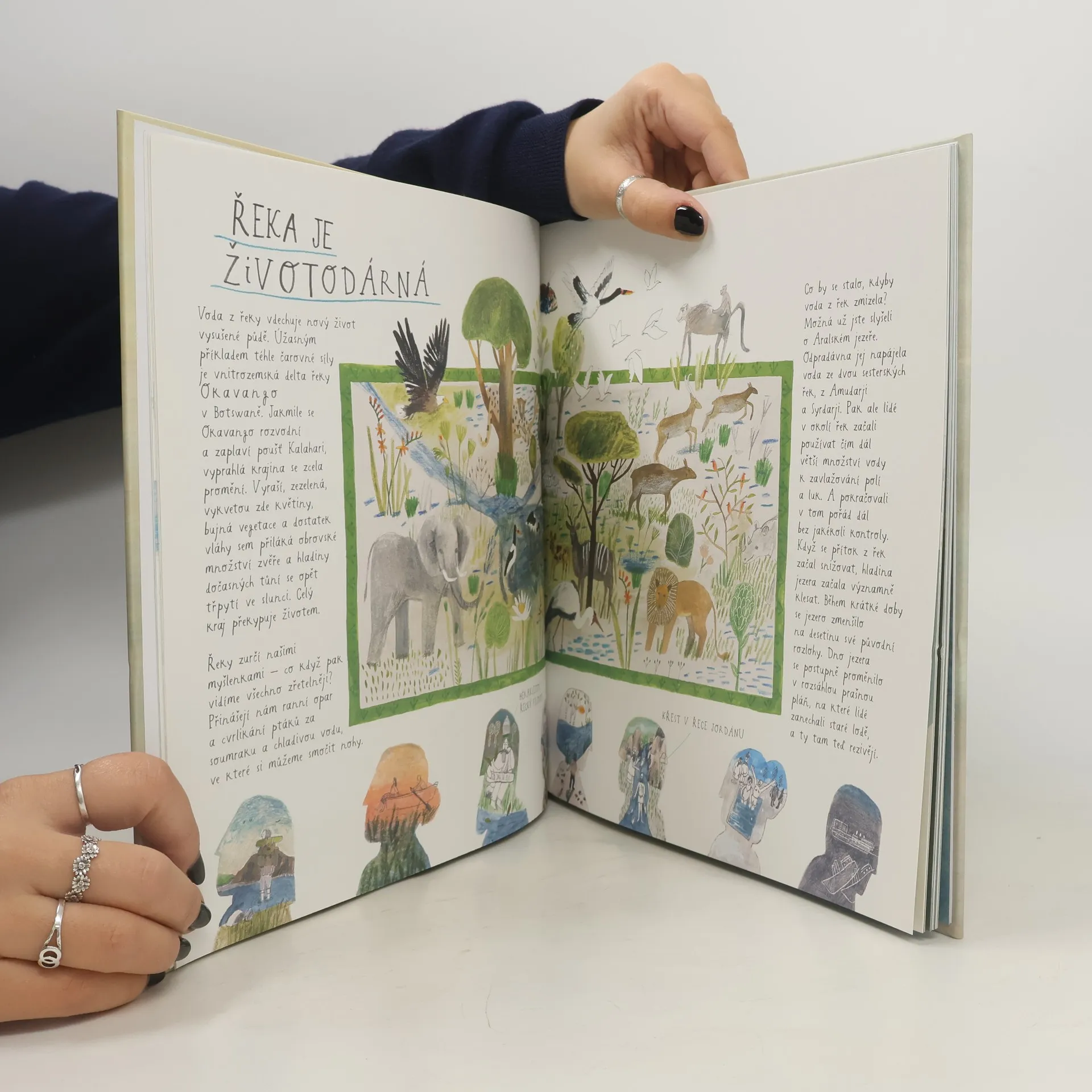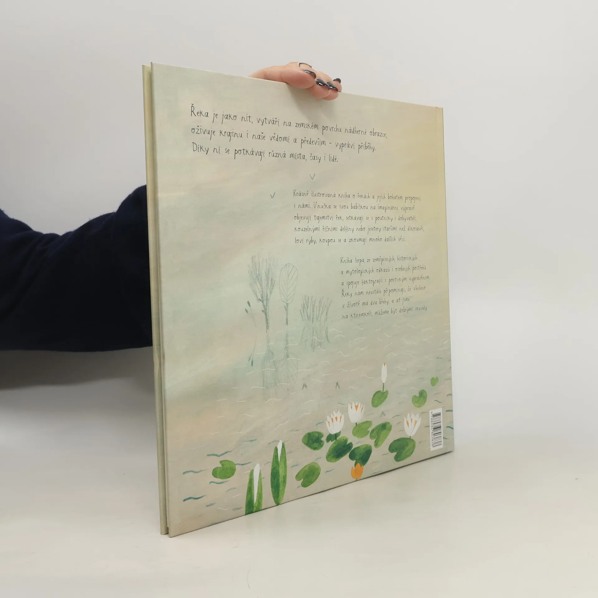 Krásně ilustrovaná kniha o řekách a jejich bohatém propojení s námi. Vnučka se svou babičkou na imaginární výpravě objevují tajemství řek, setkávají se s poutníky i dobyvateli, kouzelnými říčními delfíny nebo jesetery staršími než dinosauři, loví ryby, koupou se a zkoumají mnoho dalších věcí. Řeka je jako nit, vytváří na zemském povrchu nádherné obrazce, oživuje krajinu i naše vědomí a především - vypráví příběhy. Díky ní se potkávají různá místa, časy i lidé.Kniha čerpá ze zeměpisných, historických a mytologických odkazů i osobních postřehů a spojuje faktografii s poetickým vyprávěním. Řeky nám neustále připomínají, že všechno v životě má dva břehy, a ať jsme na kterémkoli, můžeme být dobrými sousedy.