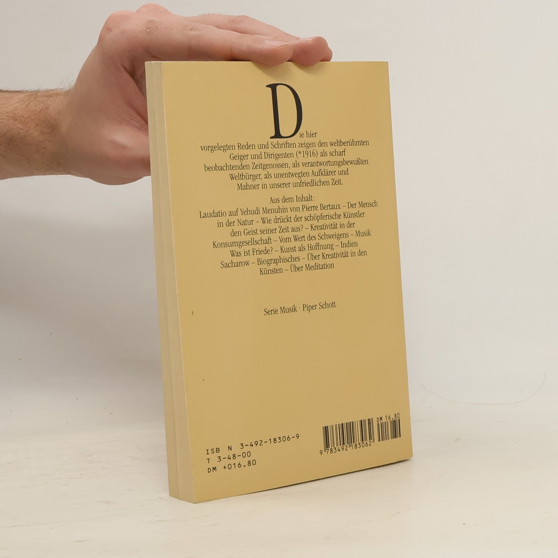 Kunst als Hoffnung für die Menschheit - Reden und Schriften - bk1089; R. Piper Verlag; Yehudi Menuhin; Paperback; 1986