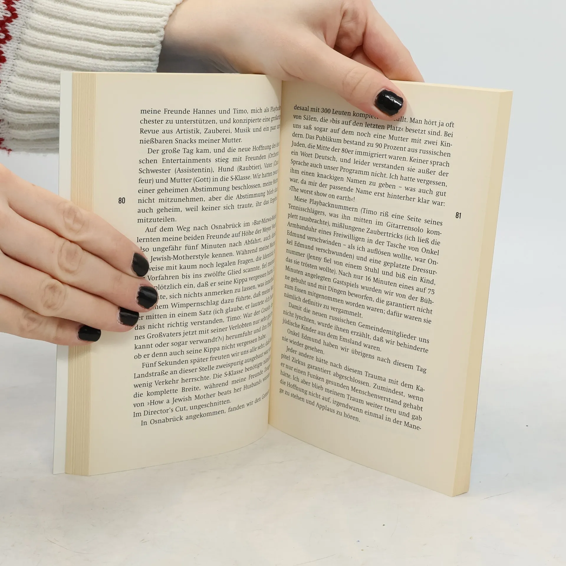 Oliver Polak, dreißig Jahre alt und Jude, blickt auf seine Jugend in der einzigen jüdischen Familie in Papenburg zurück. Er erzählt von seinen Erfahrungen als Teil der Generation Eins nach der Stunde Null, zwischen Thora und VIVA. Die Erzählung umfasst seine Freistunden im Religionsunterricht mit einem Moslem und einem Zeugen Jehovas, die strengen Lehren seiner herrischen Mutter, seine Psychotherapie, die doppelte Beschneidung und seine Zeit in einem orthodoxen Internat in England. Zudem reflektiert er über seinen überstandenen Hodentumor und zieht Parallelen zwischen Juden und Jamaikanern. Polak verknüpft persönliche Anekdoten mit humorvollen Beobachtungen, etwa was er mit dem Papst und Alf gemeinsam hat, und äußert seine Gedanken über die Region Emsland. Er geht manchmal weit, doch er hat das Recht dazu – er ist Jude! Der Autor wünscht sich, dass die Leser das Buch nicht aus schlechtem Gewissen oder politischer Korrektheit lesen, sondern sich stattdessen ein zweites Exemplar kaufen. Lachen über diese Themen ist wichtig, und Polak erzählt mit Charme und Chuzpe, sodass der jüdische Humor in Deutschland wieder lebendig wird.