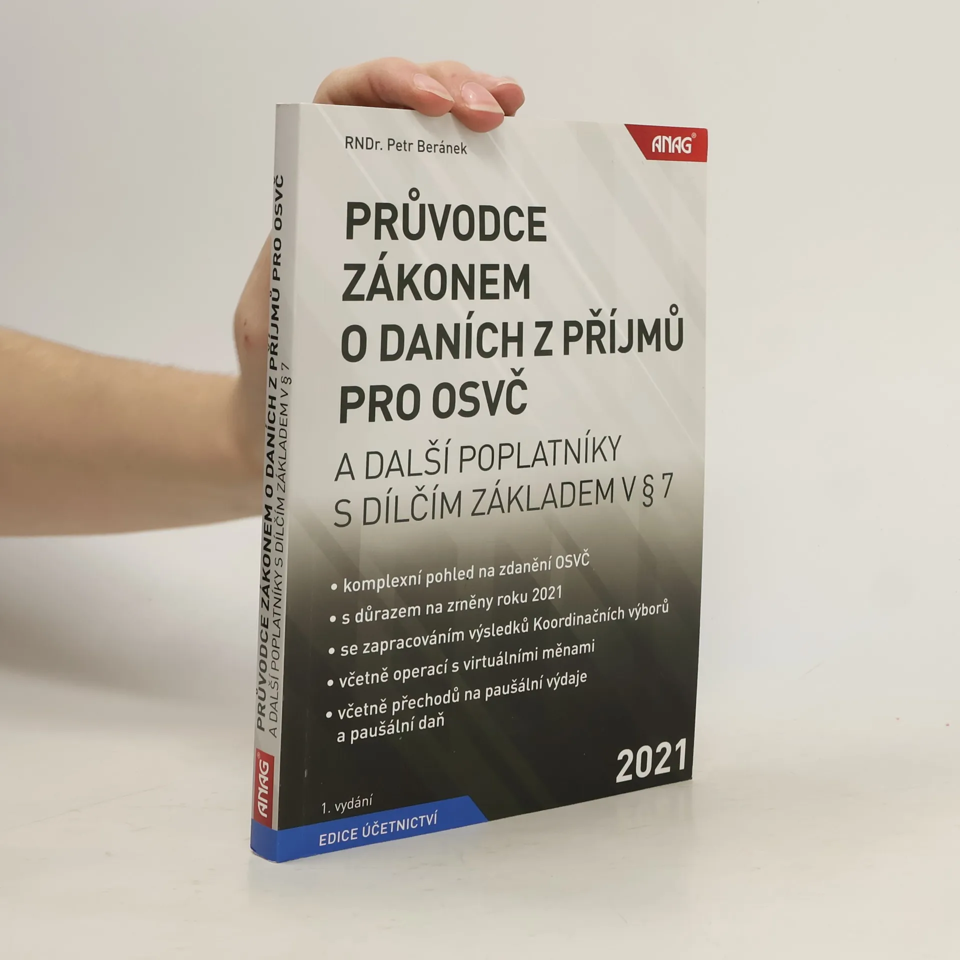 Publikace se snaží o ucelený pohled na problematiku daně z příjmů u OSVČ, přesněji u osob zdaňujících svůj příjem podle § 7 ZDP. Novinky, které přinesl daňový balíček pro rok 2021 Velký důraz je věnován novinkám, které přinesl daňový balíček pro rok 2021, např. nové koncepci paušální daně a důsledkům přechodu na ni, odpisování majetku v období změny příslušných ustanovení či zpětného uplatnění ztráty. Veškerá problematika je přitom začleněna do kontextu dalších souvisejících zákonů - pohledu DPH, občanského zákoníku, zákoníku práce, živnostenského zákona atd., důraz je kladen i na formální náležitosti, jako je registrace, podávání přiznání a dalších podání, hrozby případných sankcí. Podrobněji k obsahu publikace Autor se přitom nevyhýbá nejasným nebo sporným oblastem a dává i čtenáři prostor pro samostatné posouzení vyjádřením alternativních názorů, a to hlavně názorů GFŘ, pokud se odchylují od jiných výkladů zákona. Kniha postihuje i někdy opomíjené oblasti, jako zdanění poplatníka účtujícího v hospodářském roce, problematika přechodu mezi jednotlivými způsoby vykazování (vedení účetnictví, daňové evidence, paušální výdaje, paušální daň) nebo daňové problémy obchodního majetku při jednotlivých způsobech vykazování. Autor se pokouší o kompromis mezi precizním podáním a srozumitelností. Všechny důležité informace jsou doplněny textem zákonů, ze kterých vyplývají, složitější konstrukce jsou ilustrovány na jednoduchých příkladech. Pro koho je kniha určena? Publikace by neměla chybět v knihovničce žádného daňového poradce nebo zkušené účetní, kteří sestavují přiznání k dani z příjmu OSVČ.