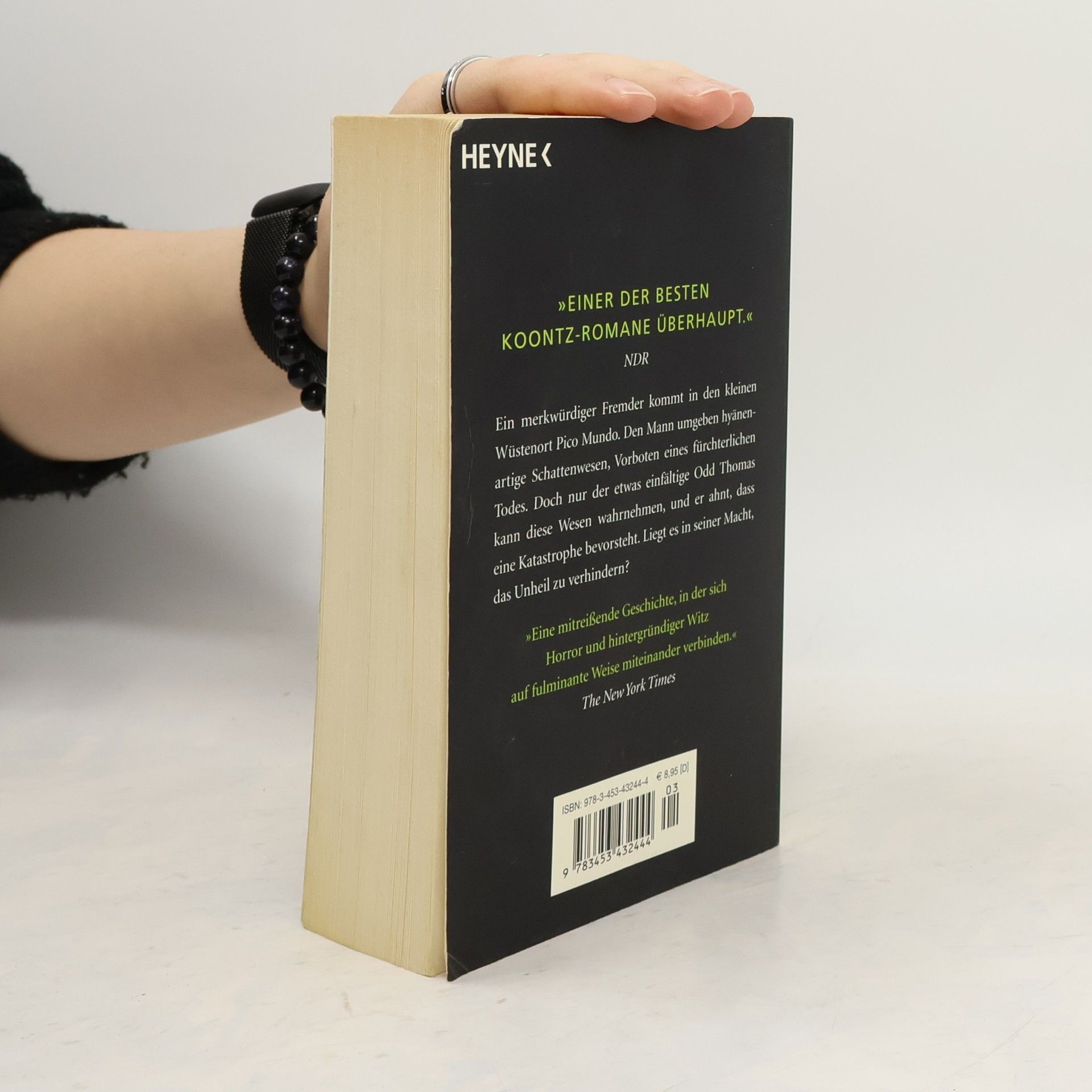 Nie war das Grauen bedrohlicher ... Ein merkwürdiger Fremder kommt in den kleinen Wüstenort Pico Mundo. Ihn umgeben hyänenartige Schatten, Vorboten eines fürchterlichen Todes. Doch nur der etwas einfältige Odd Thomas erkennt sie. Kann er das drohende Massaker verhindern? Odd Thomas lebt bescheiden und zufrieden als Koch in einem kleinen amerikanischen Provinznest. Hochgeistiges ist ihm fremd, doch er hat eine besondere Gabe: Er sieht die Toten und kann mit ihnen kommunizieren. Und er sieht Bodachs, lebende Schatten, die sich von Leid und Verderben nähren. Als ein merkwürdiger Fremder, umflirrt von diesen Schatten, das Restaurant betritt, in dem Odd arbeitet, weiß er, dass Fürchterliches droht. Trotz der Warnungen seiner impulsiven Freundin Stormy wagt er es, dem Mann nachzuspüren und in sein Haus einzudringen. Was er in einem Geheimzimmer findet, lässt ihm das Blut in den Adern gefrieren: einen Schrein, der all den Massenmördern dieser Welt gewidmet ist ...