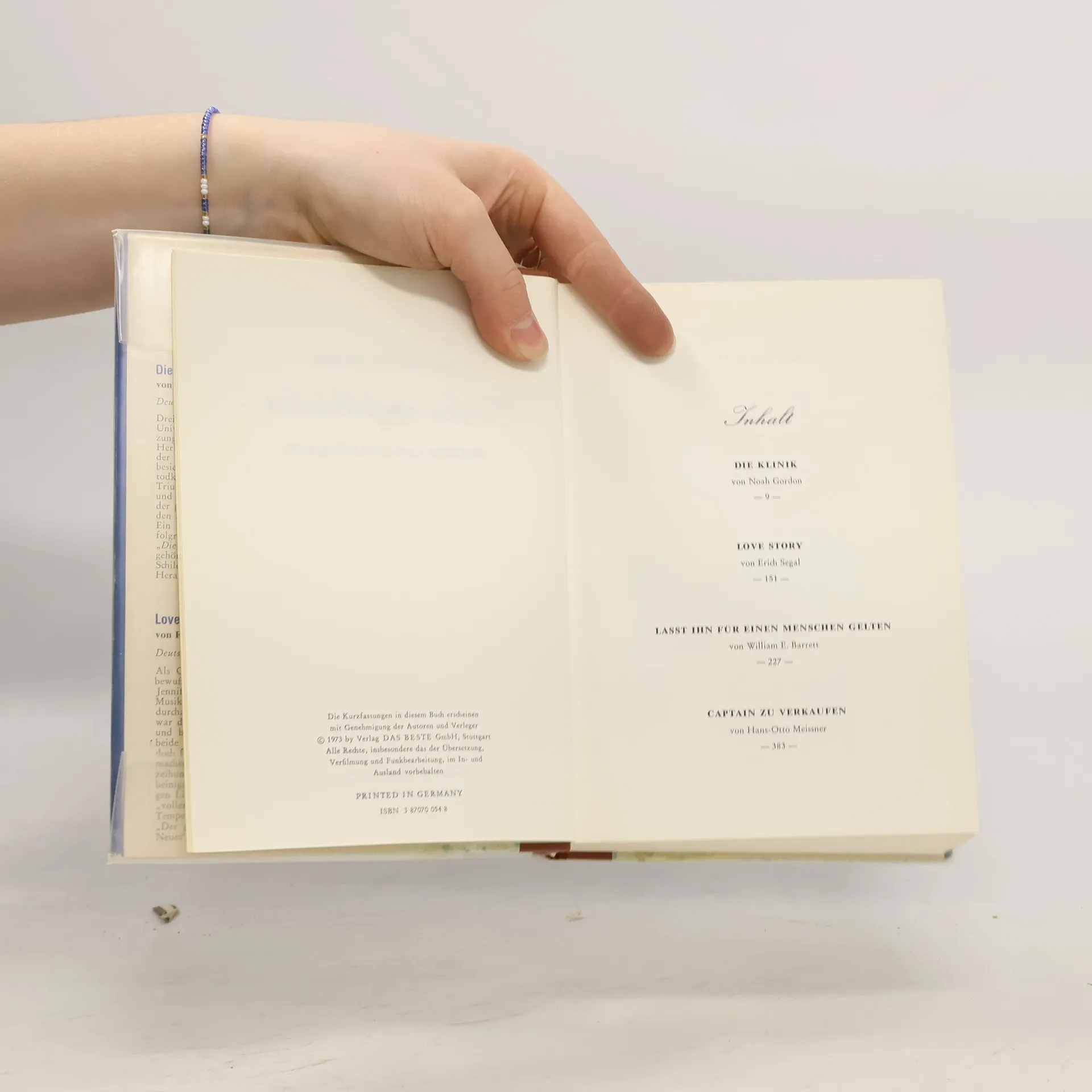 Die Klinik/Love Story/Lasst ihn für einen Menschen gelten/Captain zu verkaufen - bk425; Verlag "Das Beste"; Noah Gordon/Erich Segal/William E. Barrett/Hans Otto Meissner; Paperback; 1973