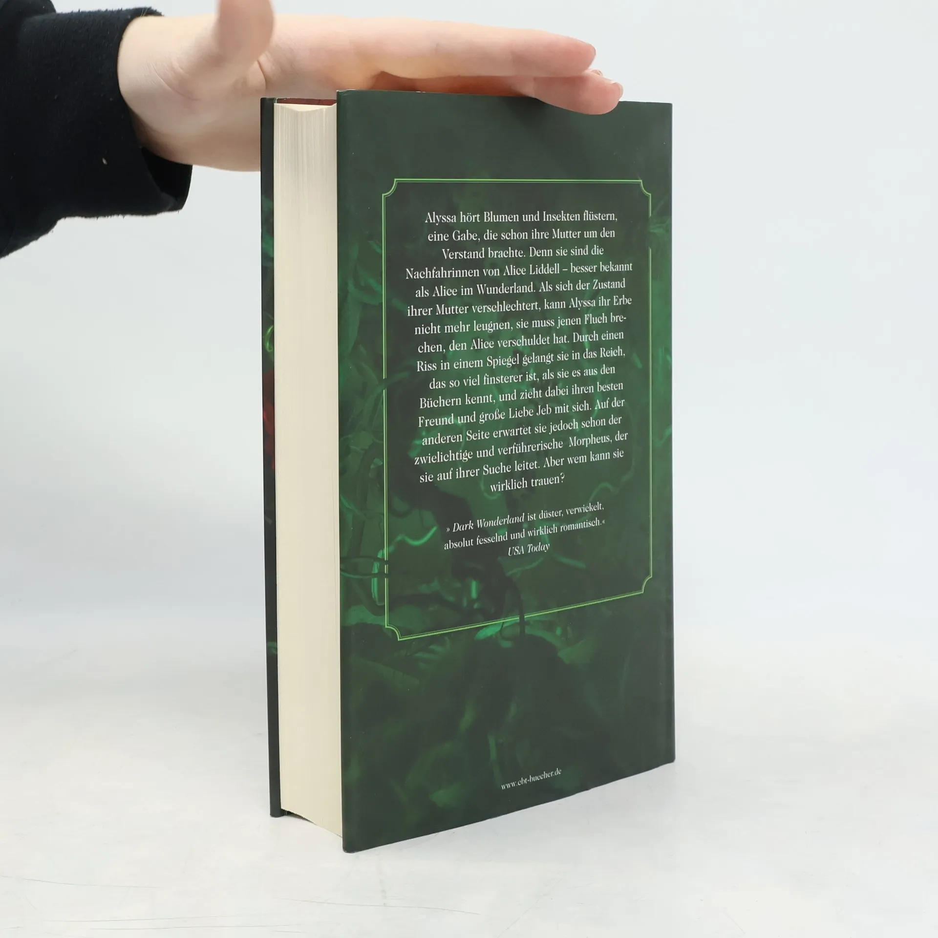 Folge dem Flüstern … in das Reich hinter dem Spiegel Alyssa kann Blumen und Insekten flüstern hören, eine Gabe, die schon ihre Mutter um den Verstand brachte. Denn sie sind die Nachfahrinnen von Alice Liddell – besser bekannt als Alice im Wunderland. Als sich der Zustand ihrer Mutter verschlechtert, kann Alyssa ihr Erbe nicht mehr leugnen, sie muss jenen Fluch brechen, den Alice damals verschuldet hat. Durch einen Riss im Spiegel gelangt sie in das Reich, das so viel finsterer ist, als sie es aus den Büchern kennt, und zieht dabei ihren besten Freund und geheime Liebe Jeb mit sich. Auf der anderen Seite erwartet sie jedoch schon der zwielichtige und verführerische Morpheus, der sie auf ihrer Suche leitet. Aber wem kann sie wirklich trauen?