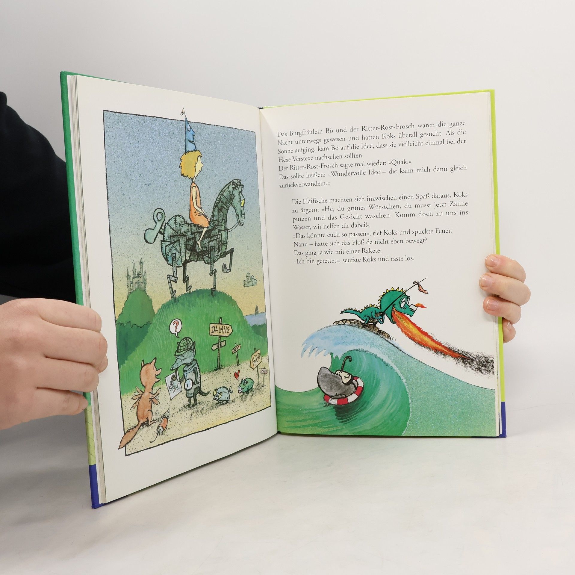 In dieser Ritter Rost-Geschichte bekommt der Ritter Besuch von der Hexe Verstexe, die ihn in einen Blechfrosch zum Aufziehen verwandelt. Koks der Feuerdrache flieht und muss einige haarsträubende Abenteuer bestehen, bis sich Burgfräulein Bö und Ritter Blechfrosch auf die Suche nach ihm machen.