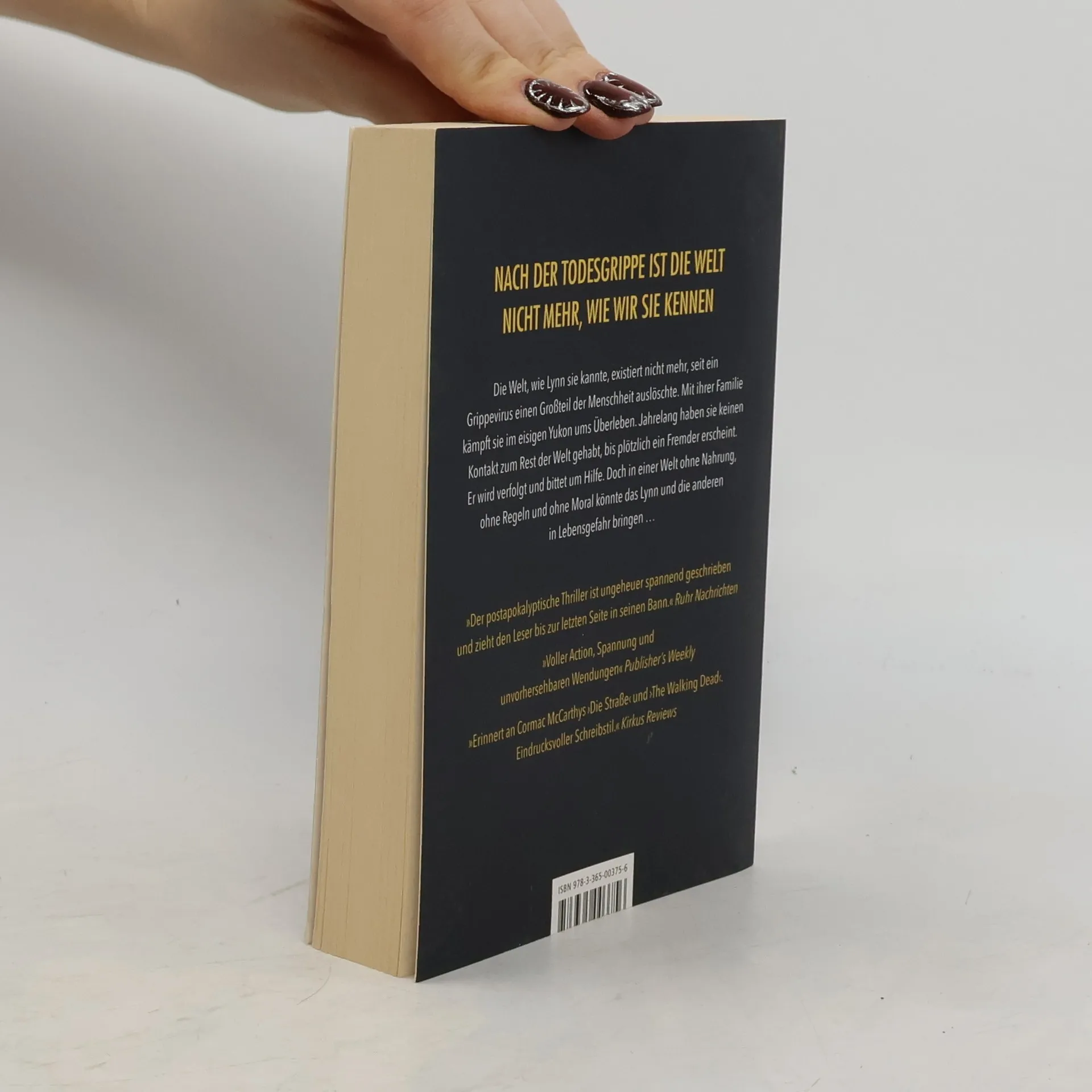 Nach der Todesgrippe ist die Welt nicht mehr, wie wir sie kennen Die Welt, wie Lynn sie kannte, existiert nicht mehr, seit ein Grippevirus einen Großteil der Menschheit auslöschte. Mit ihrer Familie kämpft sie im eisigen Yukon ums Überleben. Jahrelang haben sie keinen Kontakt zum Rest der Welt gehabt, bis plötzlich ein Fremder erscheint. Er wird verfolgt und bittet um Hilfe. Doch in einer Welt ohne Nahrung, ohne Regeln und ohne Moral könnte das Lynn und die anderen in Lebensgefahr bringen … »Der postapokalyptische Thriller ist ungeheuer spannend geschrieben und zieht den Leser bis zur letzten Seite in seinen Bann.« Ruhr Nachrichten »Voller Action, Spannung und unvorhersehbaren Wendungen« Publisher’s Weekly »Erinnert an Cormac McCarthys ›Die Straße‹ und ›The Walking Dead‹. Eindrucksvoller Schreibstil.« Kirkus Reviews